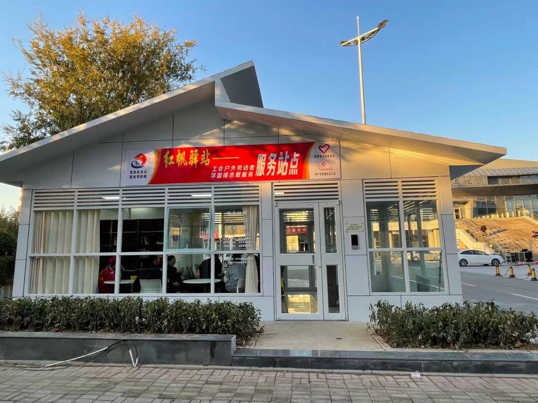 任城区百花公园户外劳动者服务站点位于刘庄路百花公园南侧,站点除了配备饮水、休息设施外,还设有空调、无线网络、图书角等。每年冬夏季节,区总工会、区综合行政执法局都依托驿站开展“关爱职工、冬送温暖、夏送清凉”活动,让周边的环卫工人等户外劳动者充分感受到工会组织的关怀与温暖。同时,这里还是一处党工共建的阵地,为附近的党员群众和流动党员提供活动服务,让党徽在驿站闪亮,让红帆在驿站飘扬。区总工会和有关部门依托驿站打造的“红帆驿站·惠工之家”党工共建品牌,被评为全区“十佳党建服务品牌”。
