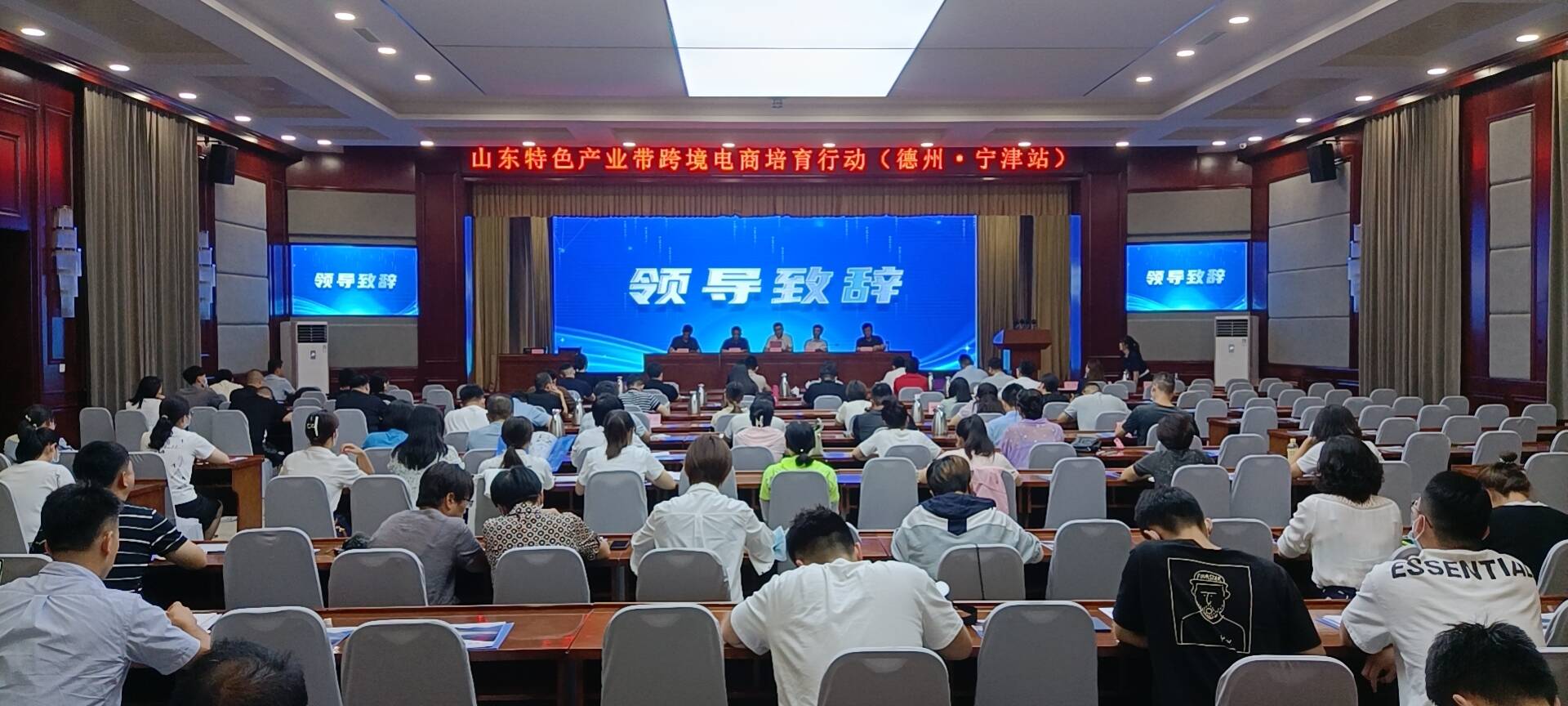 齐鲁网·闪电新闻7月29日讯 26日,宁津县举办山东特色产业带跨境电商培训会,山东省跨境电子商务协会执行会长、新华锦信贸环球国际贸易有限公司总经理刘方义,省派驻宁津县“四进”工作支队支队长满其伟,德州市商务局副局长逯泽生,县委常委、副县长常健勇出席活动。