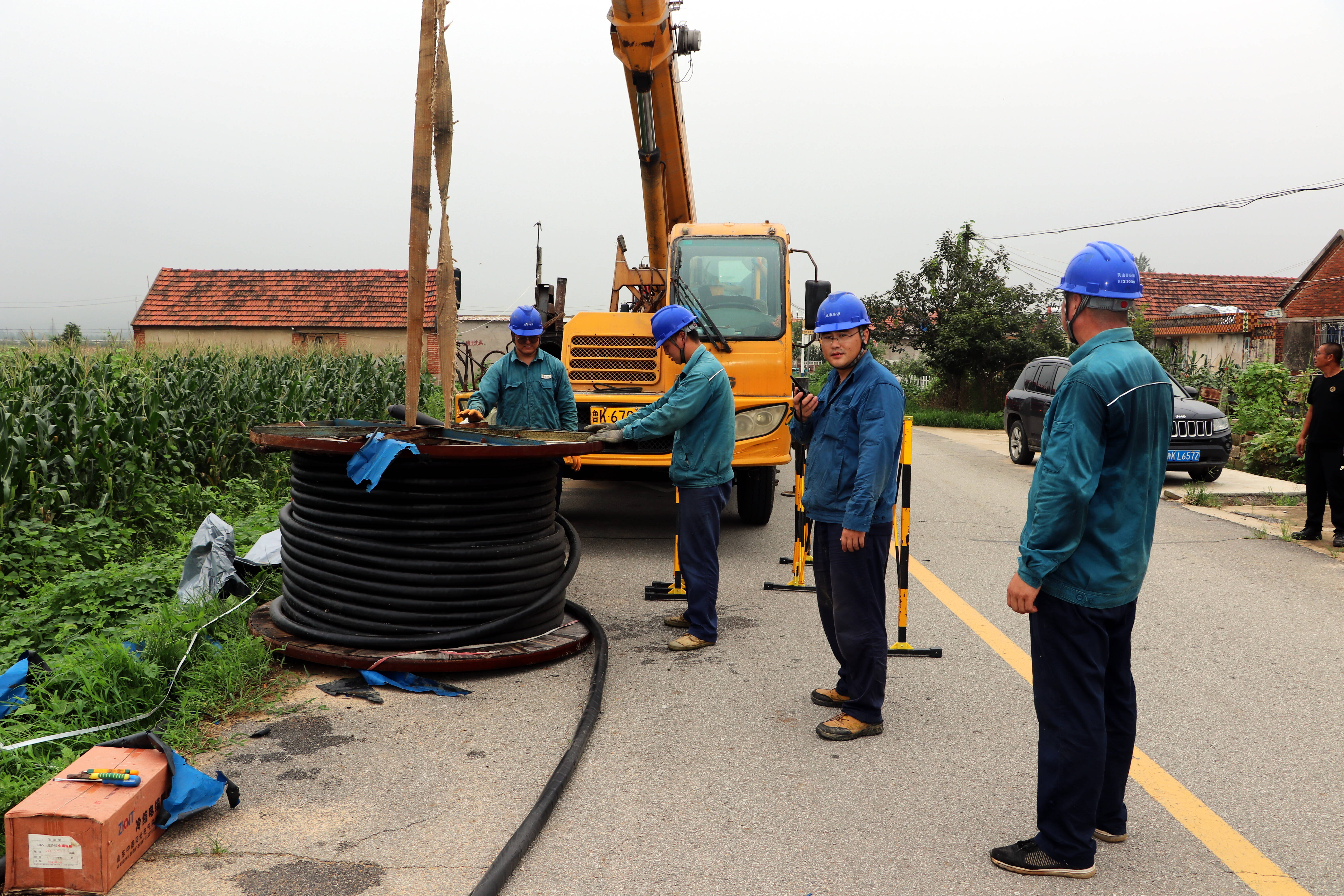 乳山市育黎镇部分供电线路因河堤冲毁而受损,造成汪水等村村民用电受到影响。国网乳山市供电公司立即启动应急预案,安排人员进行抢修。为尽快恢复供电,抢修人员采用临时供电方案,敷设电缆600余米,恢复汪水等村的电力供应。