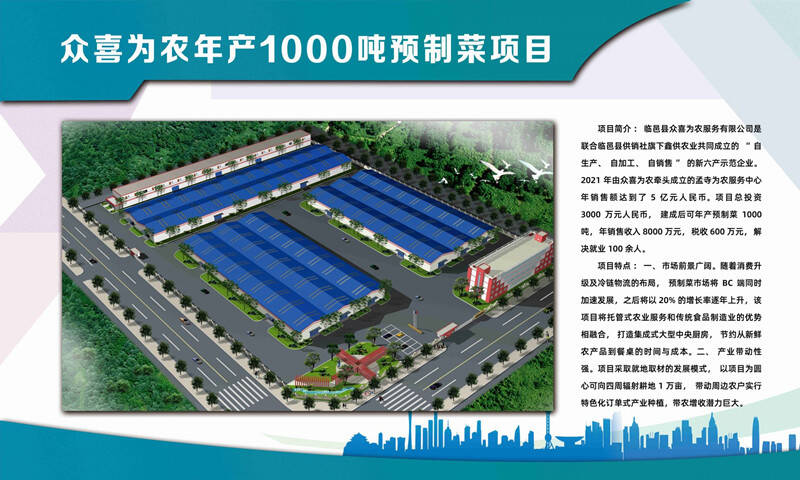 项目由临邑县众喜为农服务有限公司投资3000万元建设,项目总建筑面积14600平方米,建设四座生产车间、一座办公楼、一座餐厅、一座冷库、一座锅炉房。产品主要为预制菜,项目建成投产后,年可生产预制菜1000吨,销售收入8000万元,税收600万元,解决就业100余人。