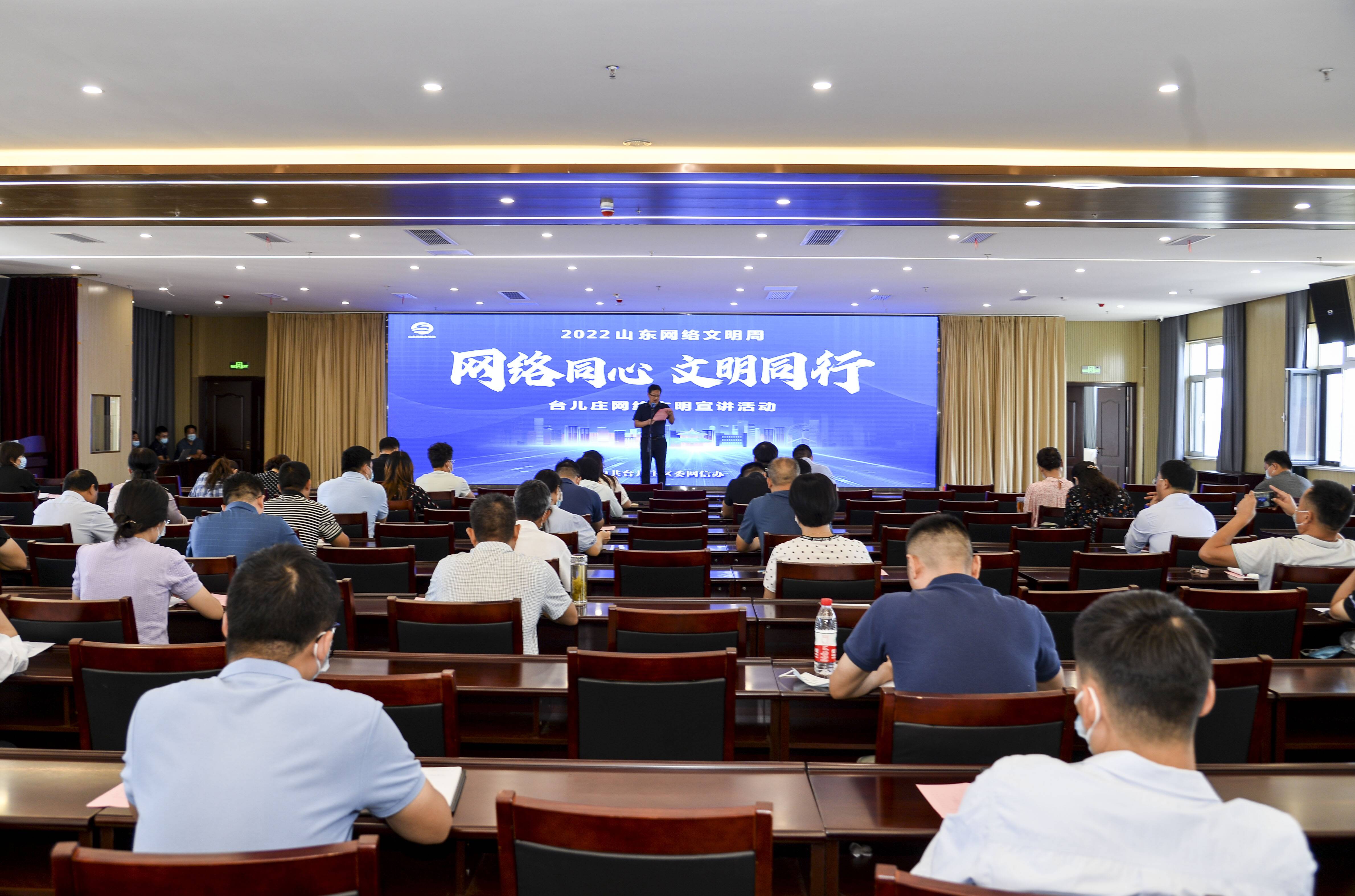 枣庄市网络文明宣讲团成员、好网民·在枣庄正能量榜样人物获得者邓一龙,作了题为《争做网络文明的传播者》的精彩宣讲。台儿庄区网络文明宣讲团成员、区公安分局刑侦大队反诈中队中队长欧阳永胜,从网络诈骗识别、网络诈骗侦破、网络诈骗警示等方面,向大家宣讲网络诈骗知识。号召大家争做有高度的安全意识、有文明的网络素养、有守法的行为习惯、有必备的防护技能的“四有”好网民。