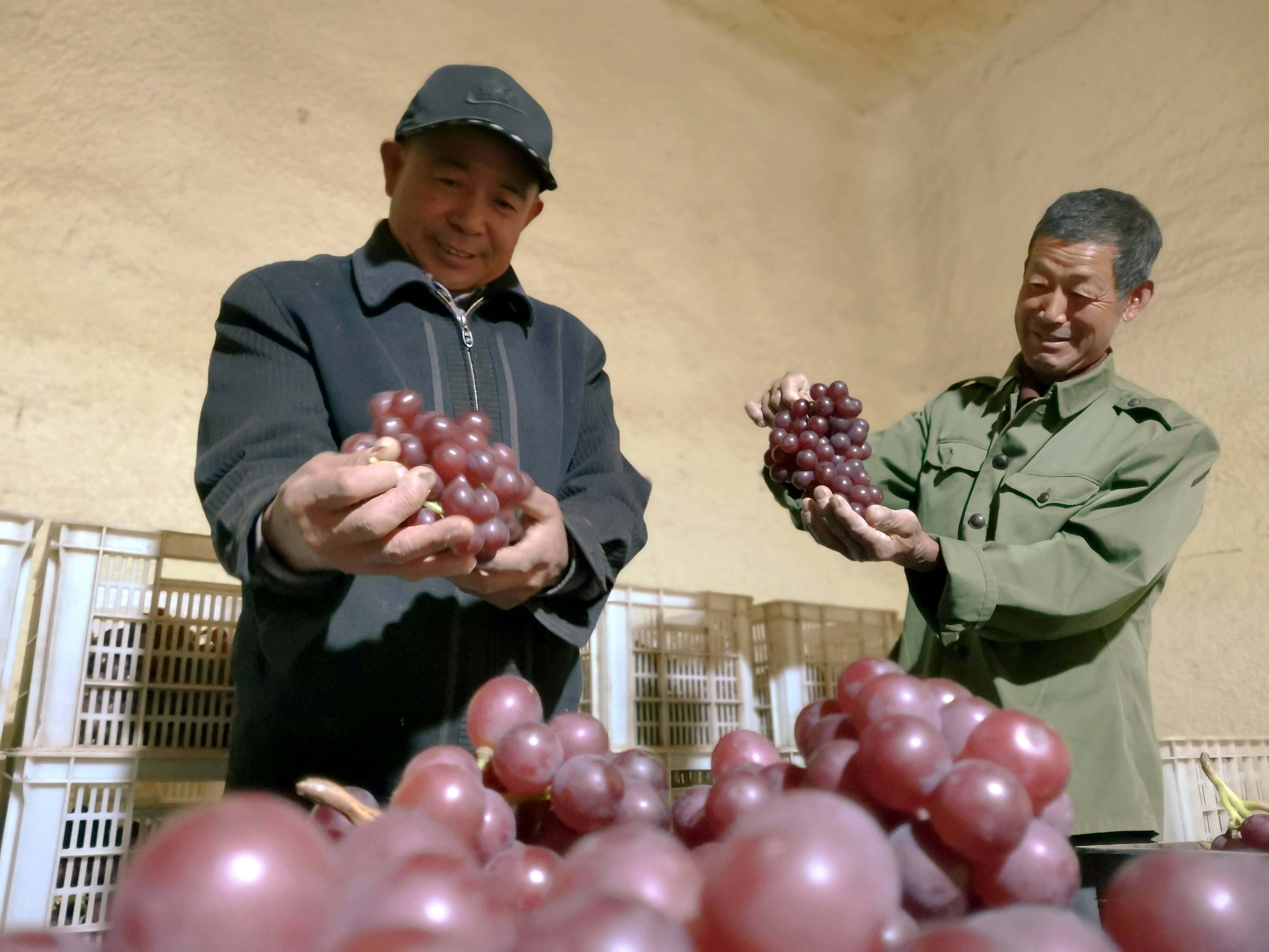 村民李京涛是个葡萄种植老手,刚卸完一车葡萄,他又急忙赶回家中,和妻子在葡萄园里查看葡萄的成熟度,为下一轮采收做准备。“我种了8亩葡萄,从‘十一’开始供给市场,全部都是供给家家悦超市,一天能铰个五六百斤。” 李京涛说。