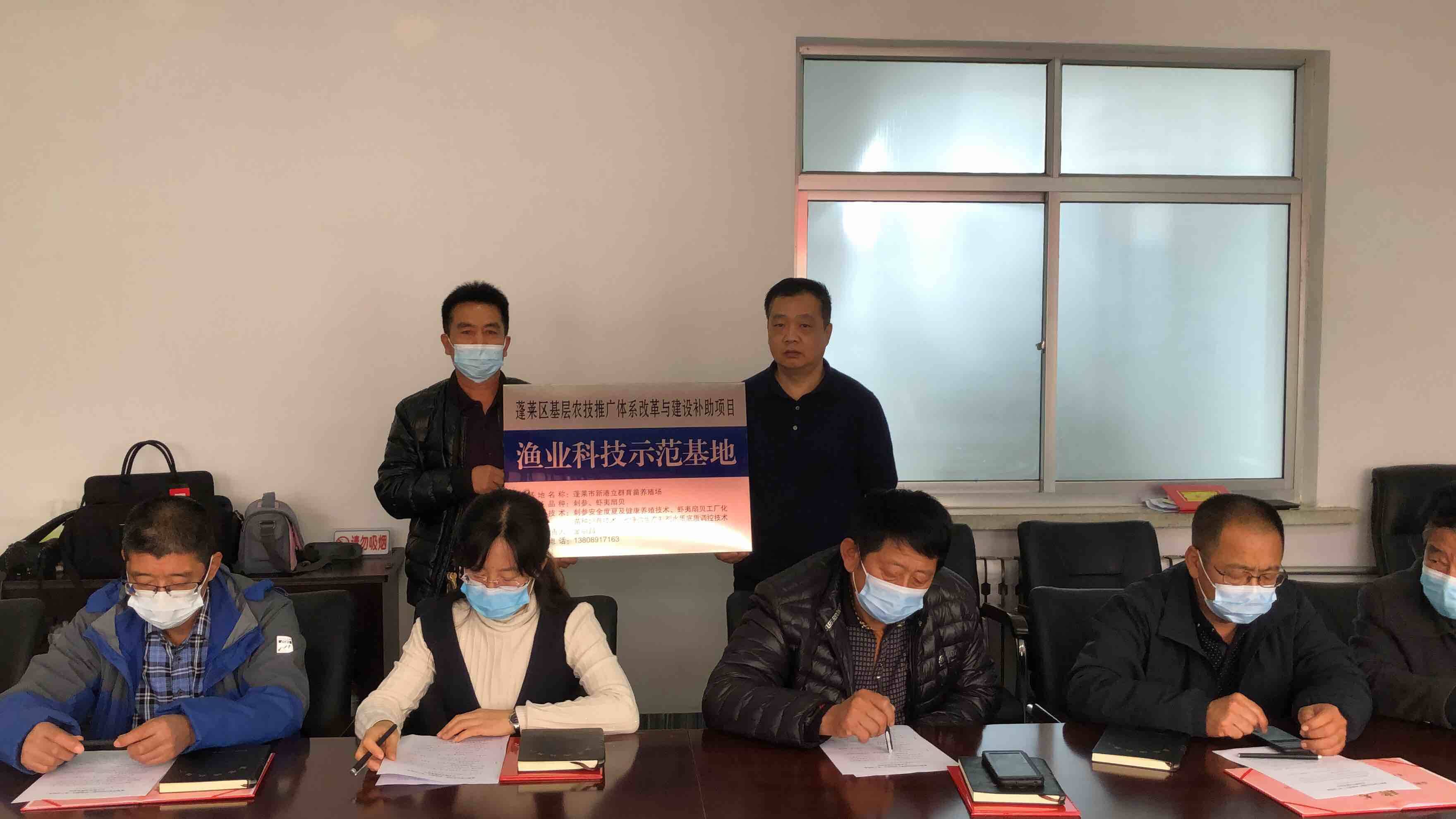 齐鲁网·闪电新闻11月30日讯 近日,烟台市蓬莱区海洋发展和渔业局召开区基层农技推广补助项目(水产养殖业)座谈会,现场为2个渔业科技试验示范基地授牌,并与15名技术指导员签订了《蓬莱区基层农技推广补助项目(水产养殖业)技术指导员服务协议》。