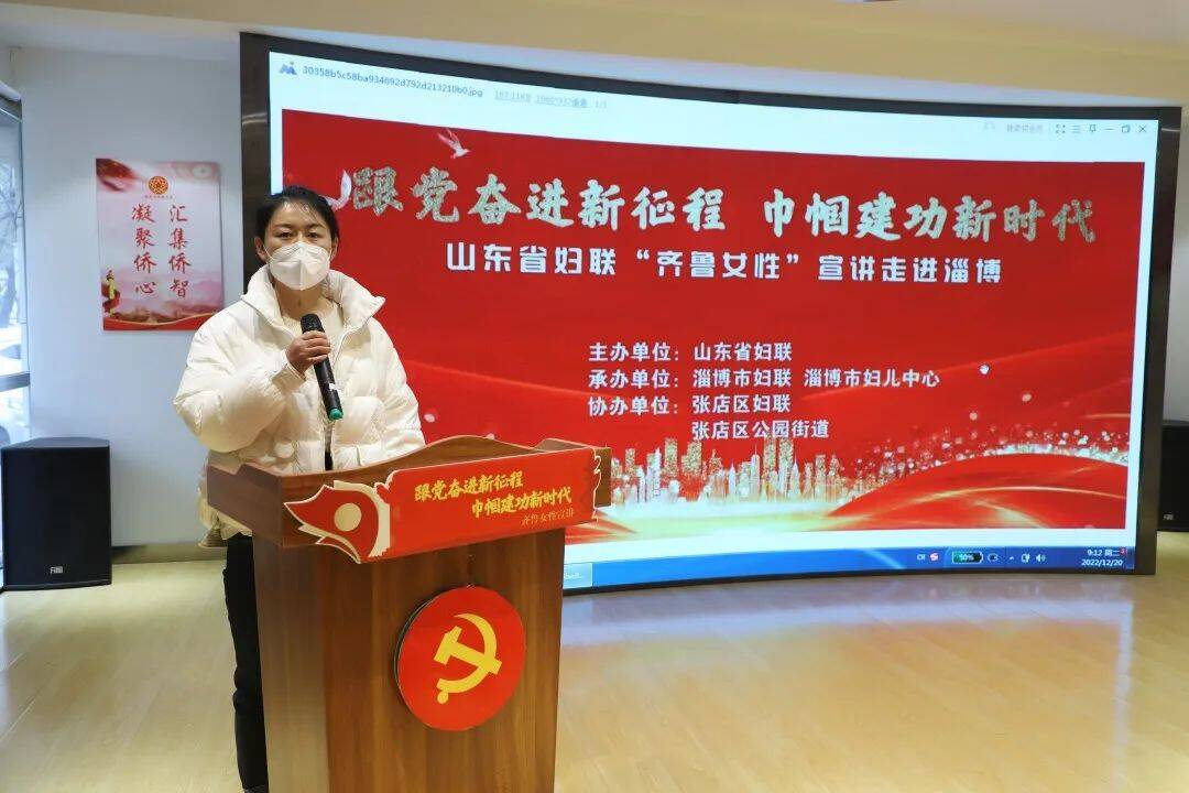 12月19-20日,“跟党奋进新征程 巾帼建功新时代”山东省妇联“齐鲁女性”宣讲走进淄博,11位宣讲员进机关、进企业、进新业态、进社区、进农村,通过理论阐释、故事宣讲、情绪管理讲座、普通话培训、音乐党课、廉洁家风思政课等形式,宣传党的二十大精神,以妇女家庭的小故事反映爱党爱国爱社会主义的大主题,引导广大妇女把感恩党、感恩新时代的真挚情感转化为奋斗建功的实际行动。