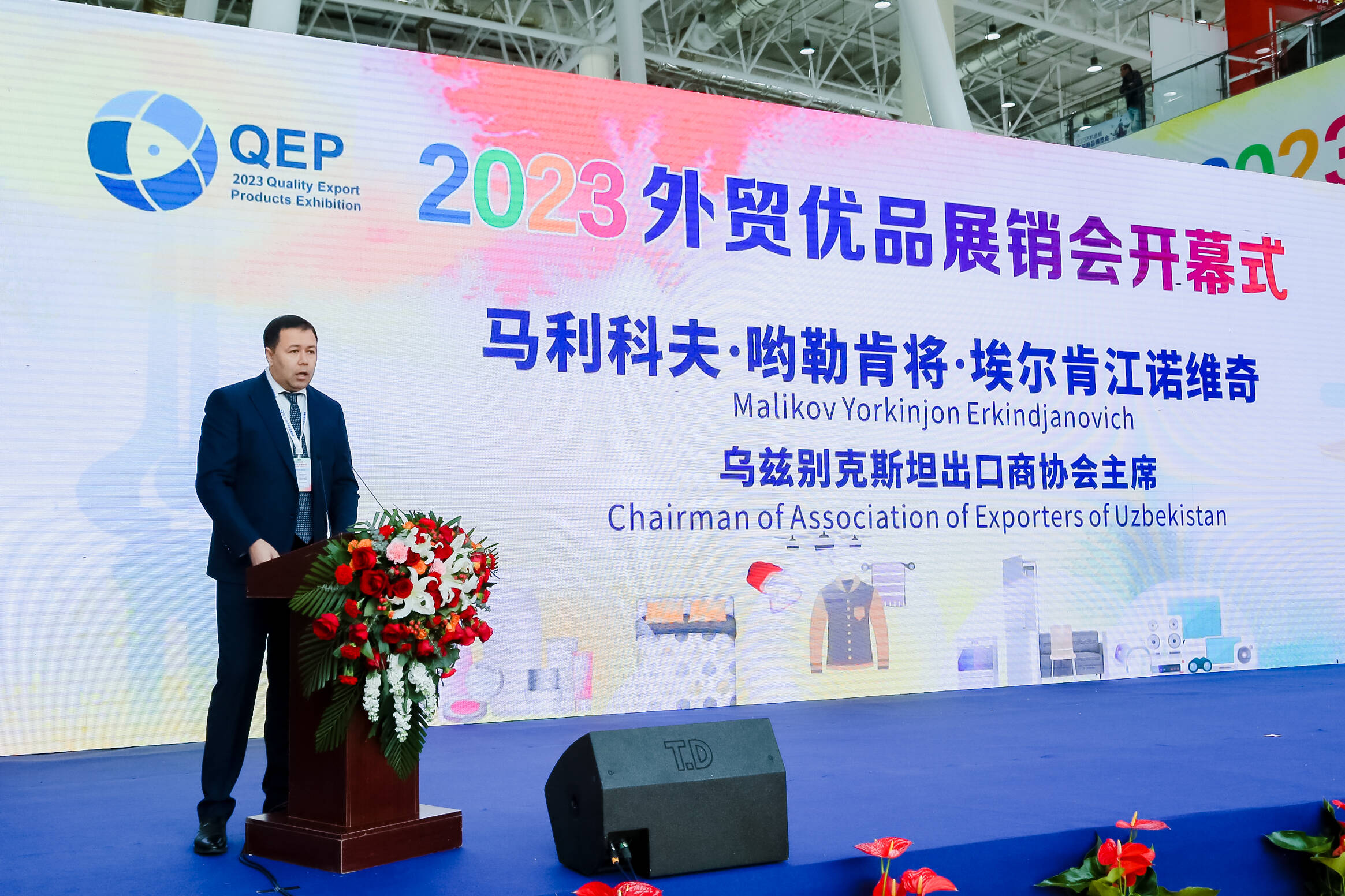 齐鲁网·闪电新闻4月21日讯 (山东台综合广播 赵雪)4月21日,2023外贸优品展销会在济南舜耕国际会展中心开幕,山东省人大常委会副主任范华平宣布开幕。乌兹别克斯坦出口商协会主席马利科夫·哟勒肯将·埃尔肯江诺维奇、山东省工商联专职副主席郭建礼出席开幕式并致辞,中国贸促会商业行业委员会书记任贵英、副会长王曦、乌兹别克斯坦出口商协会副主席伊斯马伊洛夫·胡斯尼丁·纳斯里迪诺维奇、重庆市商务委二级巡视员简真瑜、山东省发展和改革委对口支援办公室副主任梁宏强、山东省卫生健康委中医药产业发展处处长王萱出席开幕式。