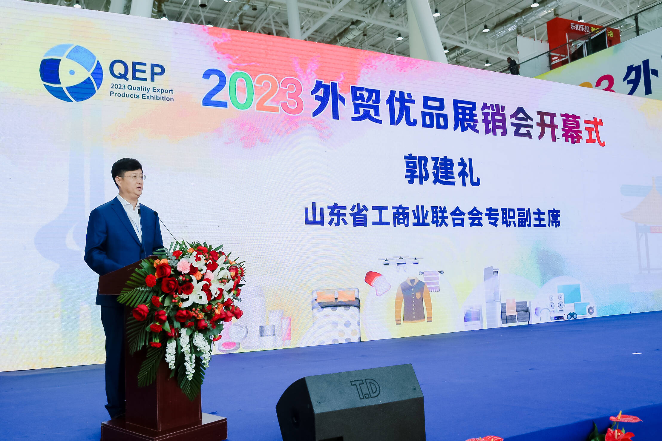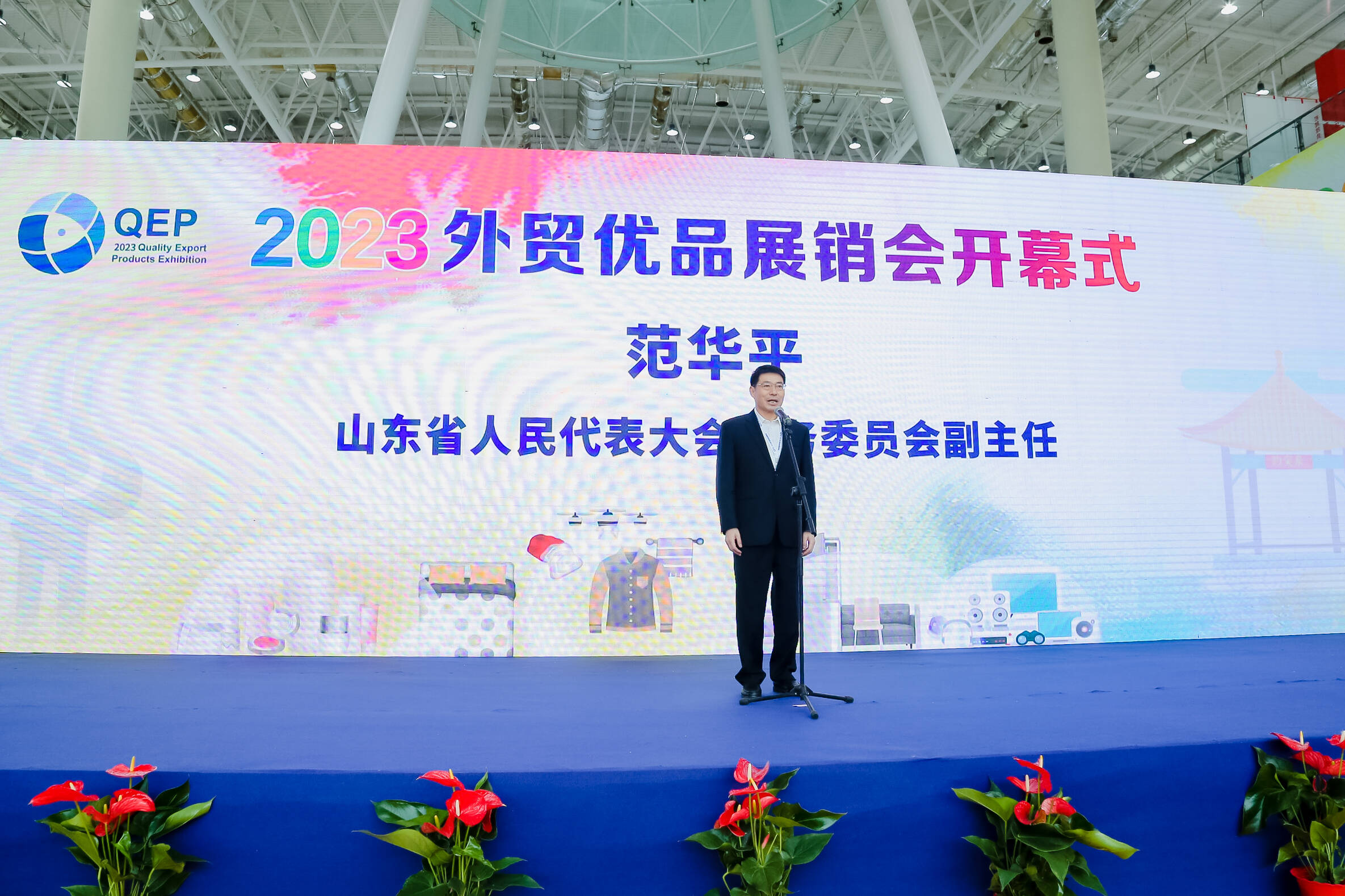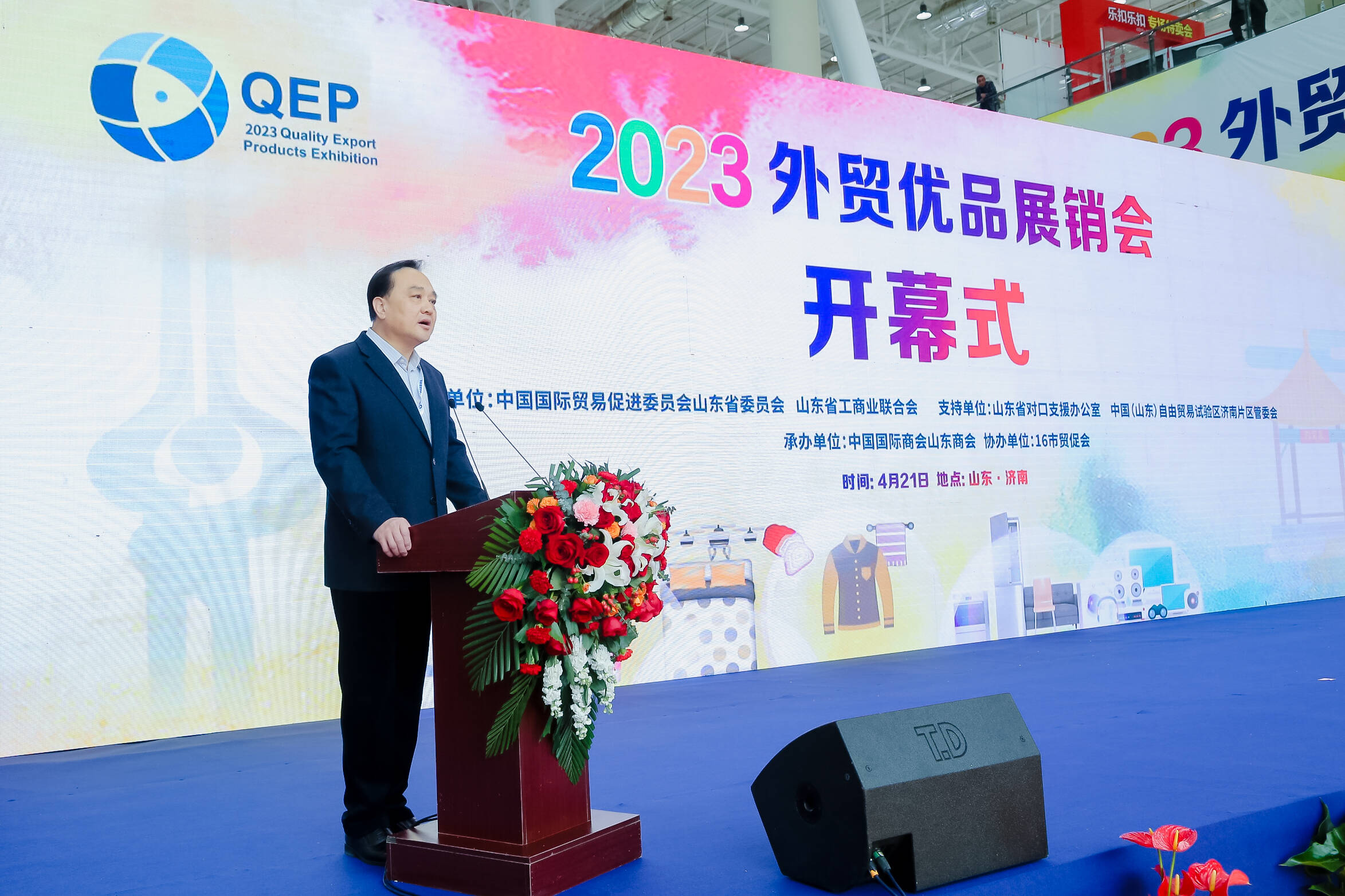 开幕式由山东省贸促会会长孟向东主持。他表示,举办“2023外贸优品展销会”,是山东贸促系统贯彻落实党中央“加快构建以国内大循环为主体、国内国际双循环相互促进的新发展格局”战略部署,全面落实习近平总书记在庆祝中国贸促会建会70周年大会重要视频致辞精神,搭建经贸合作平台、法律保障平台、展览展示平台、数字贸促平台和企业服务平台五大平台的具体举措。展销会积极服务和融入新发展格局,帮助外贸企业在国内市场树立品牌形象、拓展经销渠道、促进国内消费升级,打造省内一流、全国知名的“优品展示平台”“商超对接平台”“电商选品平台”和“大众消费平台”。