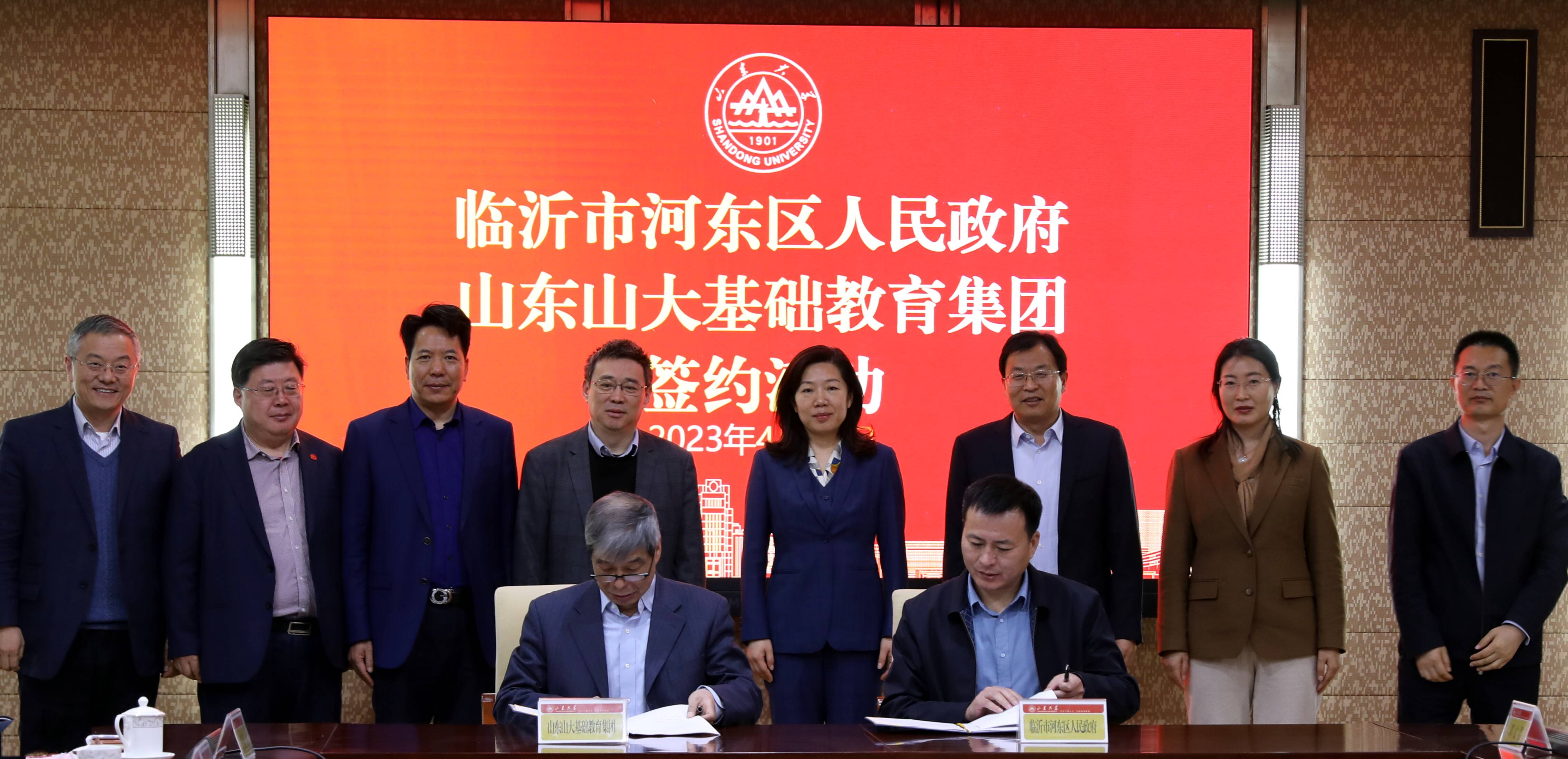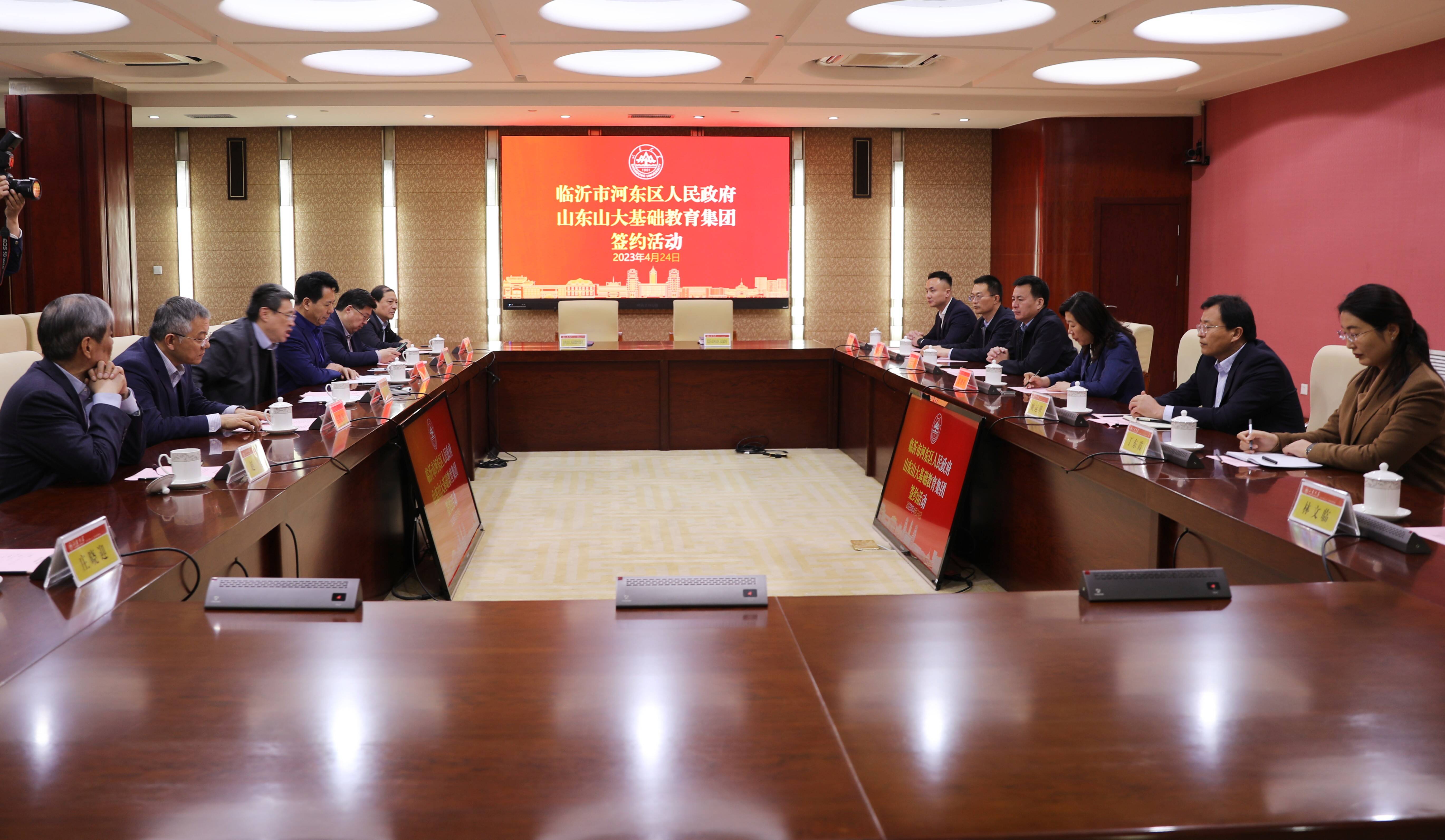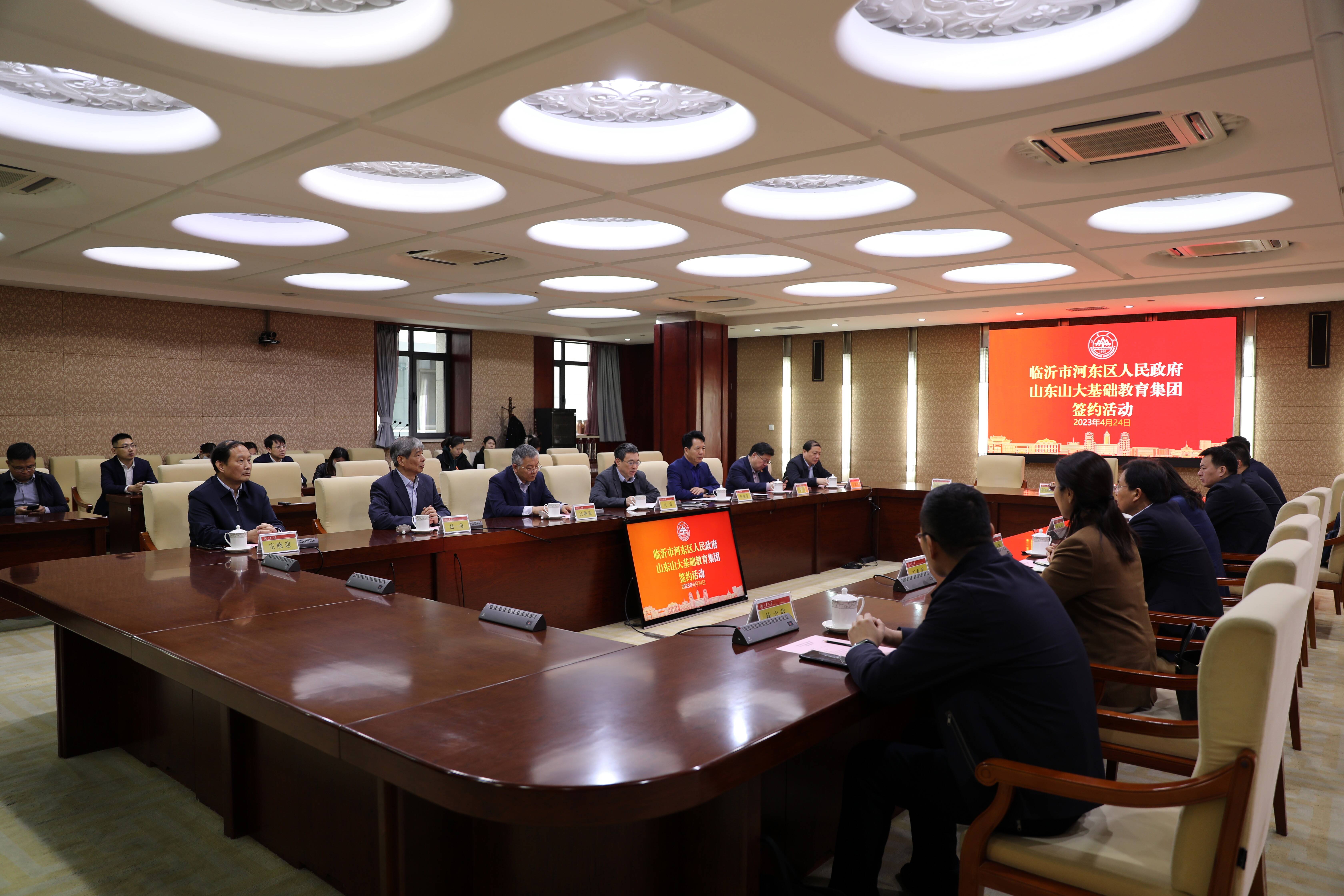 仪式上,河东区人民政府与山东山大基础教育集团签署了基础教育合作办学协议。