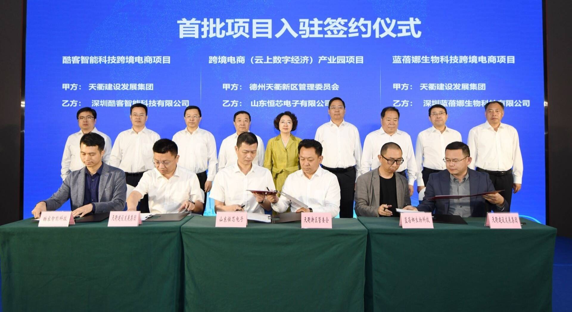 齐鲁网·闪电新闻5月29日讯 5月27日,德州天衢新区跨境电商产业园、数字经济产业园揭牌仪式暨首批项目入驻签约活动举行,当日首批共有深圳蓝蓓娜生物科技、酷客智能科技2个项目入驻产业园。
