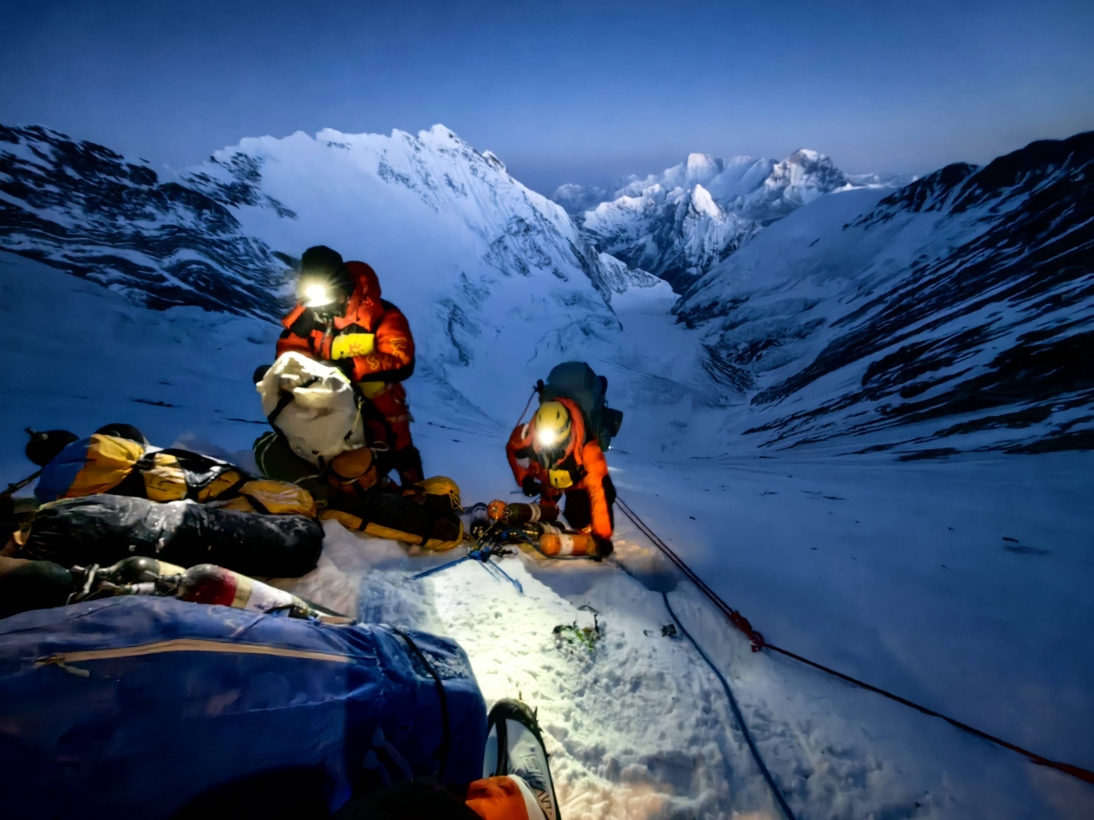 彭向雨继续说,常言道上山容易下山难,所以下山还是要打起十二分精神。由于山体陡峭,下撤时候还是会经常摔跤的,由于已经接近40个小时没有睡觉,而且没有食物的情况下 更感觉到累,想下撤到4号营地就地休息,但是领队和向导坚决不同意必须继续下撤,因为4号营地海拔7950还是一个非常危险的海拔。最终还是拖着疲惫的身躯继续下撤,下撤的过程我边走边向过路人寻找水,可能大家也都弹尽粮绝,最终还是没能找到一滴水。忍受着身体的煎熬,最后终于都挺过来了。