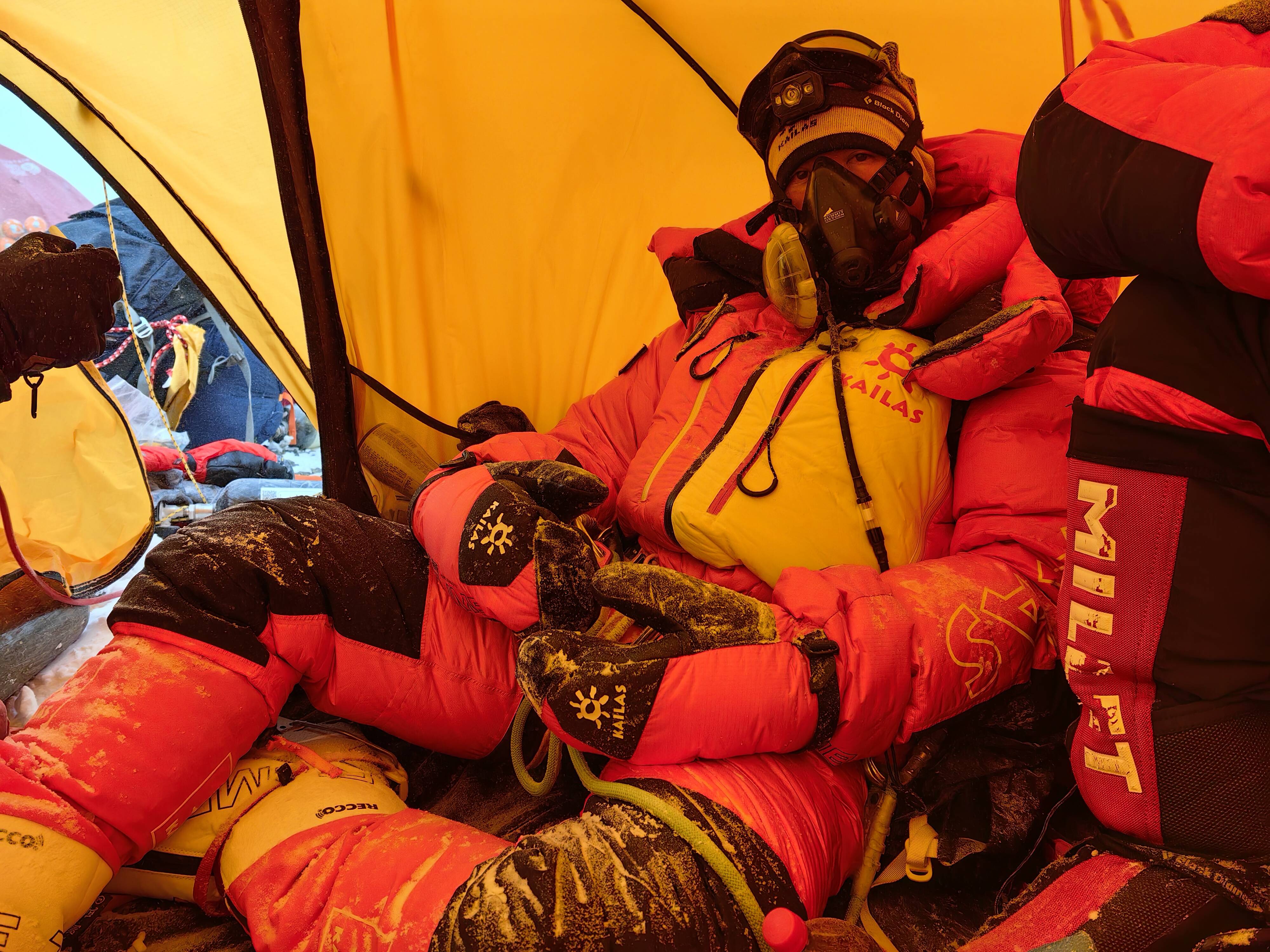 在5月16日凌晨3点左右,彭向雨到达了2号营地,这里算是一个比较安全的海拔了,终于可以好好休息一下了。在脱连体羽绒服的时候发现羽绒服已经结冰,拉锁也被冻住了,在向导的用力拉扯下,终于脱下连体羽绒服,当时全身都冻青了。5月16日早晨11点半出发,继续下撤,终于经过6个小时以后来到了珠峰南坡大本营。