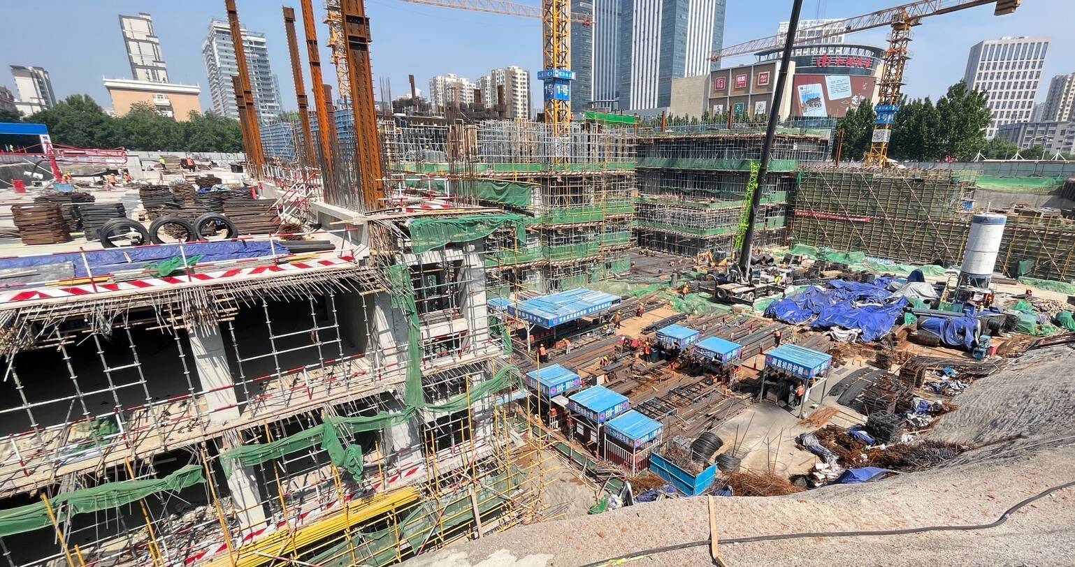 工地现场,塔吊交叉挥舞,运输车辆来回穿梭,建筑工人奋战忙碌……该项目总建筑面积约16万平方米,共建设1栋总高度约150米的36层超高商务办公楼,以及由地上7层垂直商业空间,地下4层组成的总商业面积约为5.5万平方米的购物中心。项目计划于2025年竣工后,市民可从地铁五里牌坊站直接通过地下通道接入商场的地下步行街,地下步行街规划了超市、食集等业态,丰富市民消费需求。同时,在商场内规划了一个IMAX巨幕影厅,在顶楼打造了一处空中花园和空中泳池……