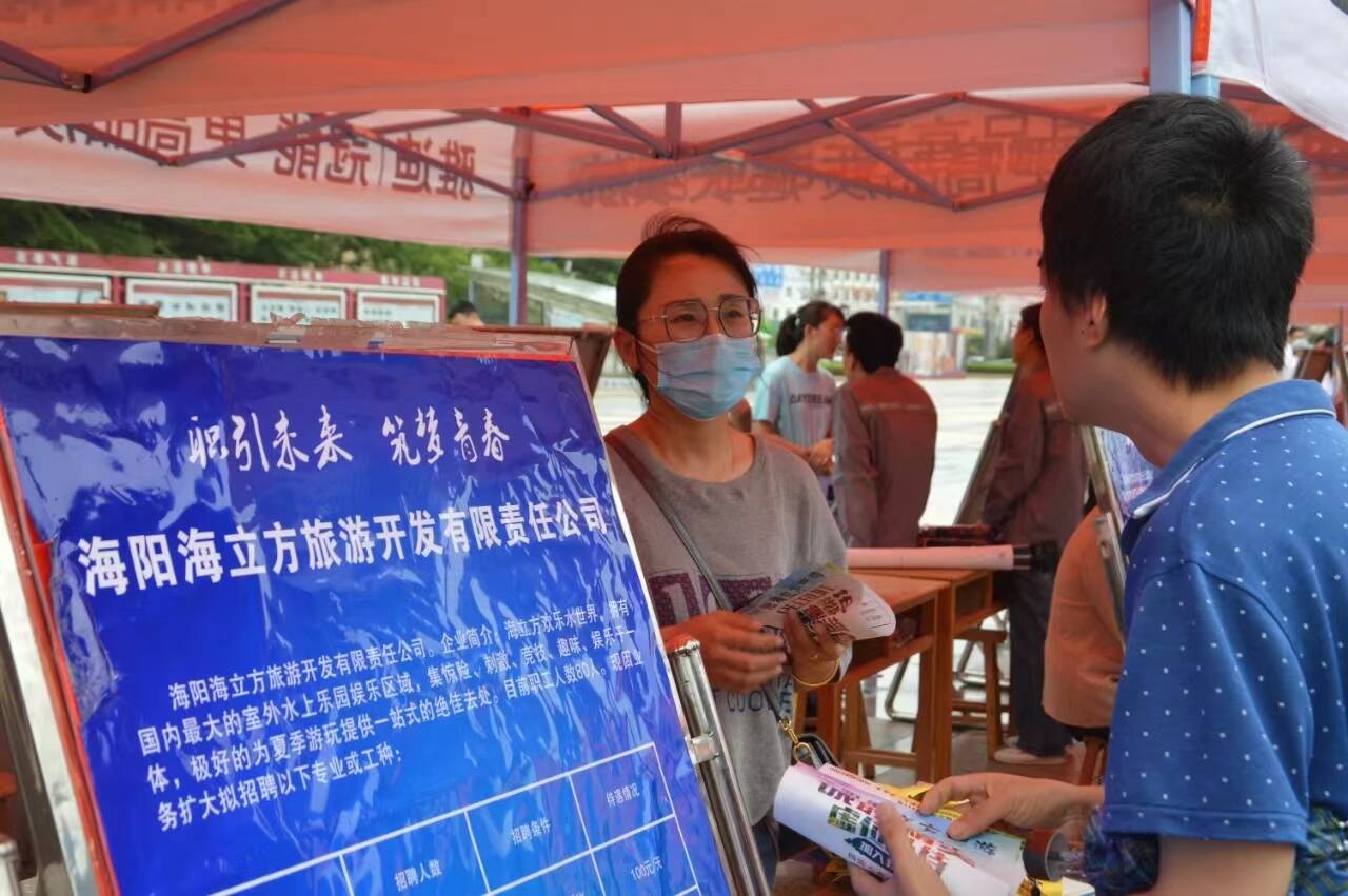 齐鲁网·闪电新闻6月29日讯 眼下,正是高校毕业生就业高峰,为了发挥企业吸纳就业人员主渠道作用,强化高校毕业生等青年群体就业服务,近日,海阳在新元广场举办“百日千万招聘专项行动”大型现场招聘会。