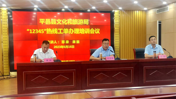 齐鲁网·闪电新闻6月21日讯 为提高县文旅局党员干部“12345·平邑首发”工作水平,6月19日,平邑县文旅局举办“12345·平邑首发”工作专题培训,邀请县12345政务服务热线受理中心业务骨干举办专题讲座。县文旅局局党组书记、局长高丕军主持。县文旅局全体干部职工参加会议。