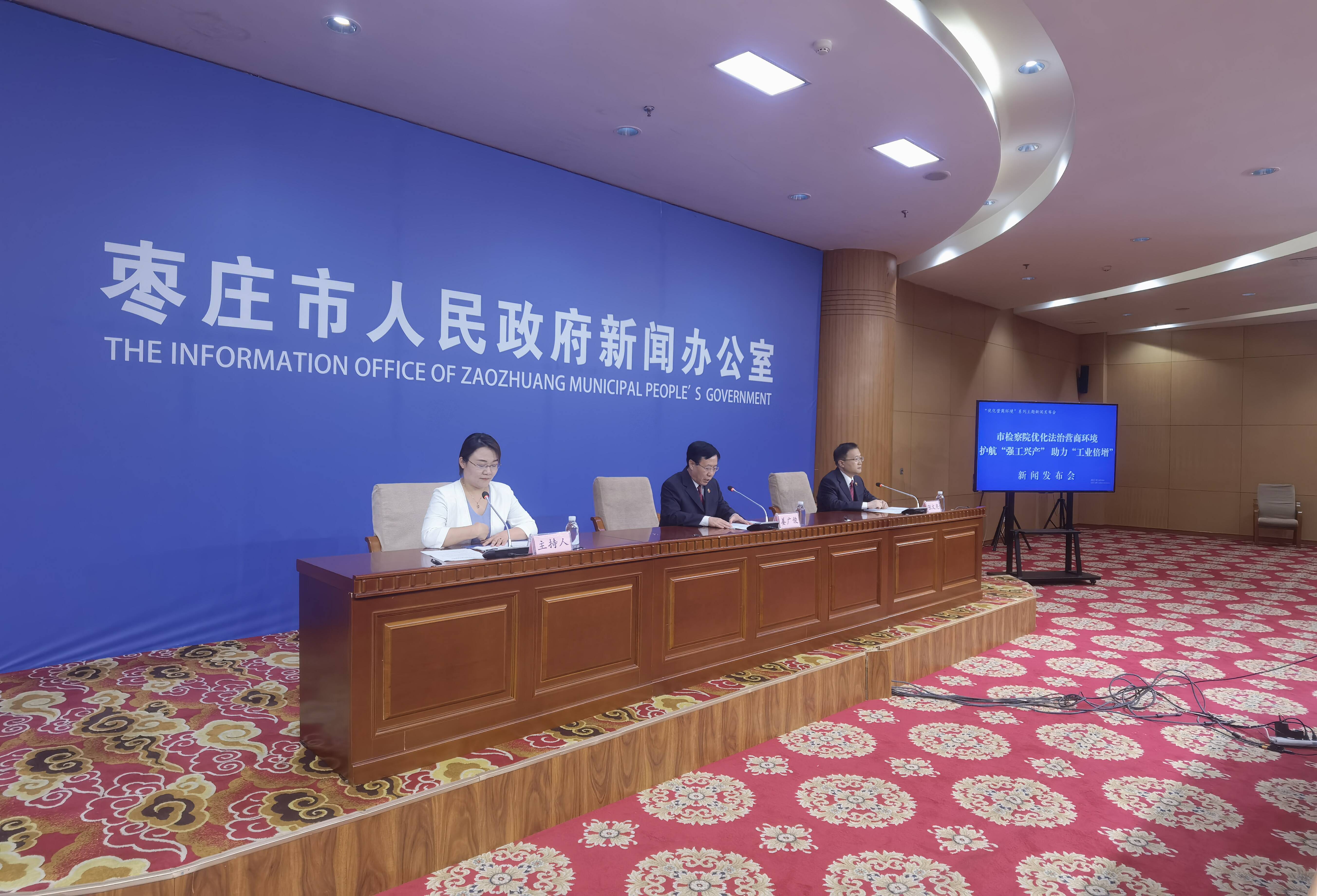 齐鲁网·闪电新闻6月26日讯 6月26日,枣庄市人民政府新闻办公室举行“市检察院优化法治营商环境 护航‘强工兴产’助力‘工业倍增’”新闻发布会。市检察院党组副书记、副检察长姜广俊;市检察院党组成员、副检察长张文亮出席发布会并回答记者提问。市委宣传部新闻二科科长褚苗主持。