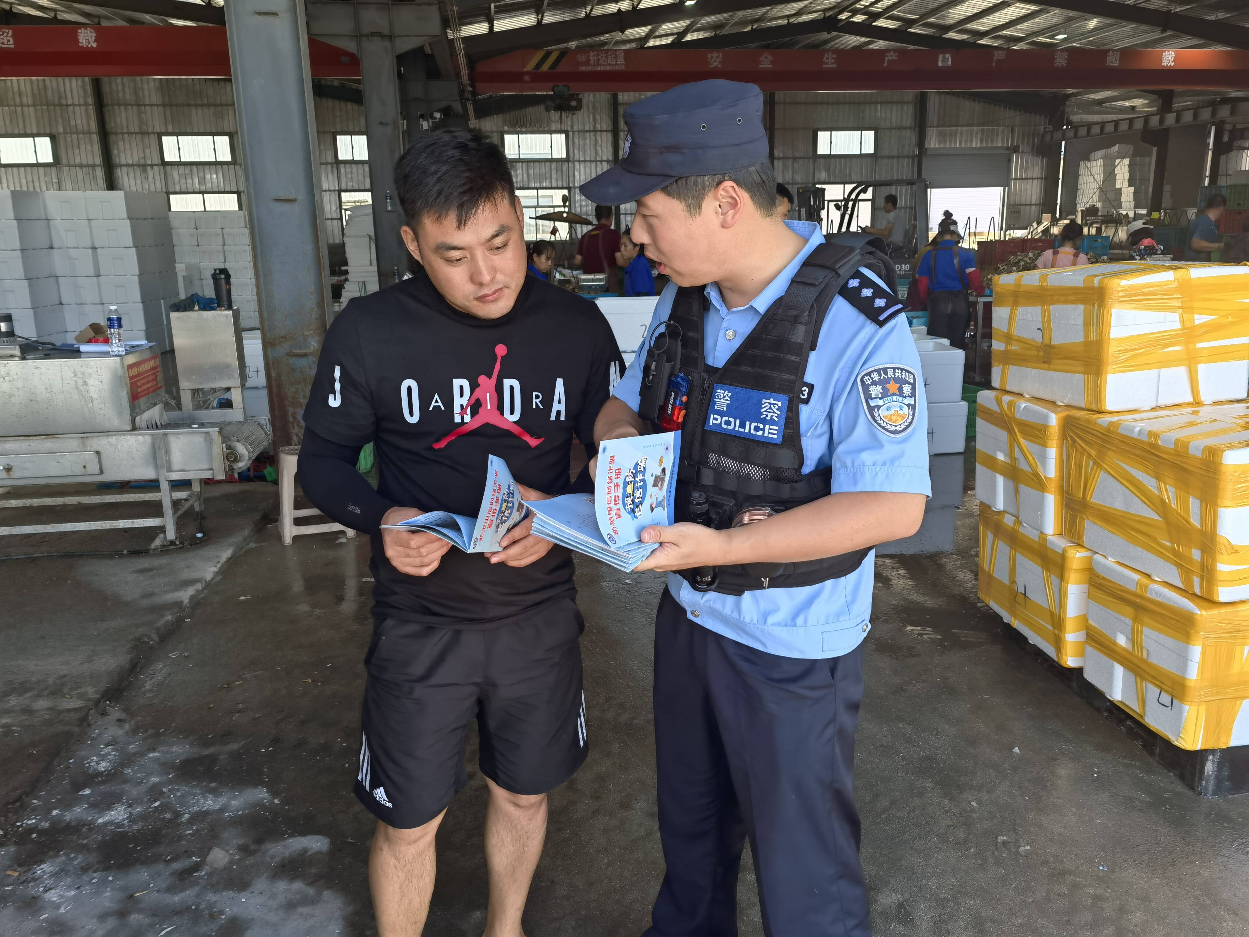 齐鲁网·闪电新闻8月8日讯 为进一步提高辖区群众防范电信诈骗的能力,预防和减少电信诈骗案件发生,近日,威海市公安局海岸警察支队南黄派出所深入辖区牡蛎养殖示范区开展反诈宣传工作。