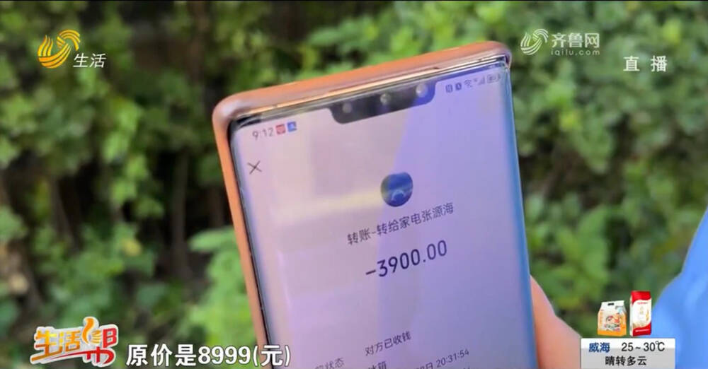 王女士说:“原价是8999元,是样机,然后说3900元,当时的价格没调下来,他说这个钱你交不到柜台上,因为价格没调下来,让我把钱转给他,明天调价的时候他给交上,结果等了十几天也没给送货,我打电话也没打通。”