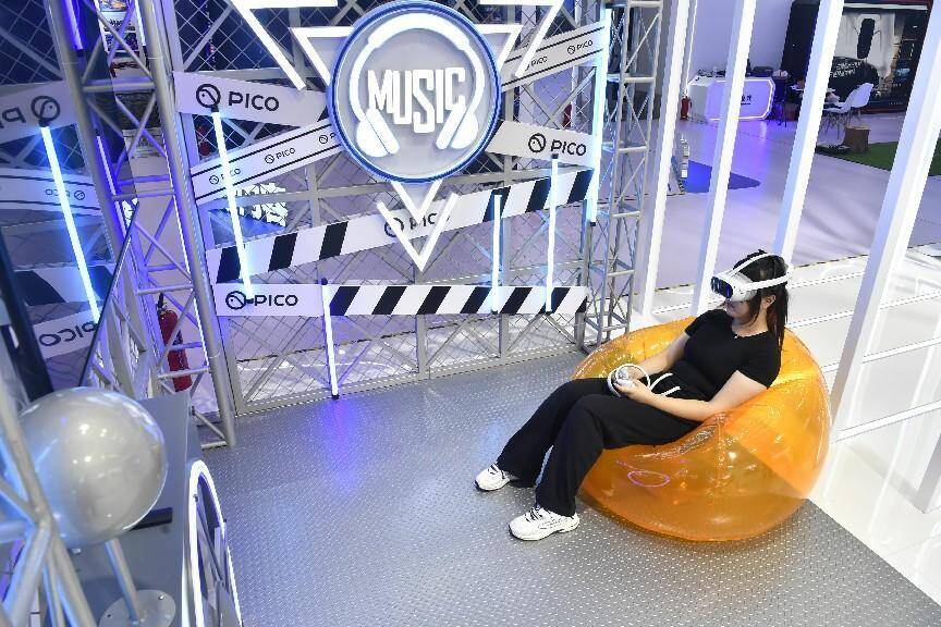 VR/AR赋能内容创作的前沿技术,体现网络视听科技含量高、内容充实、形式新颖的特质。图为沉浸式体验设备测试。