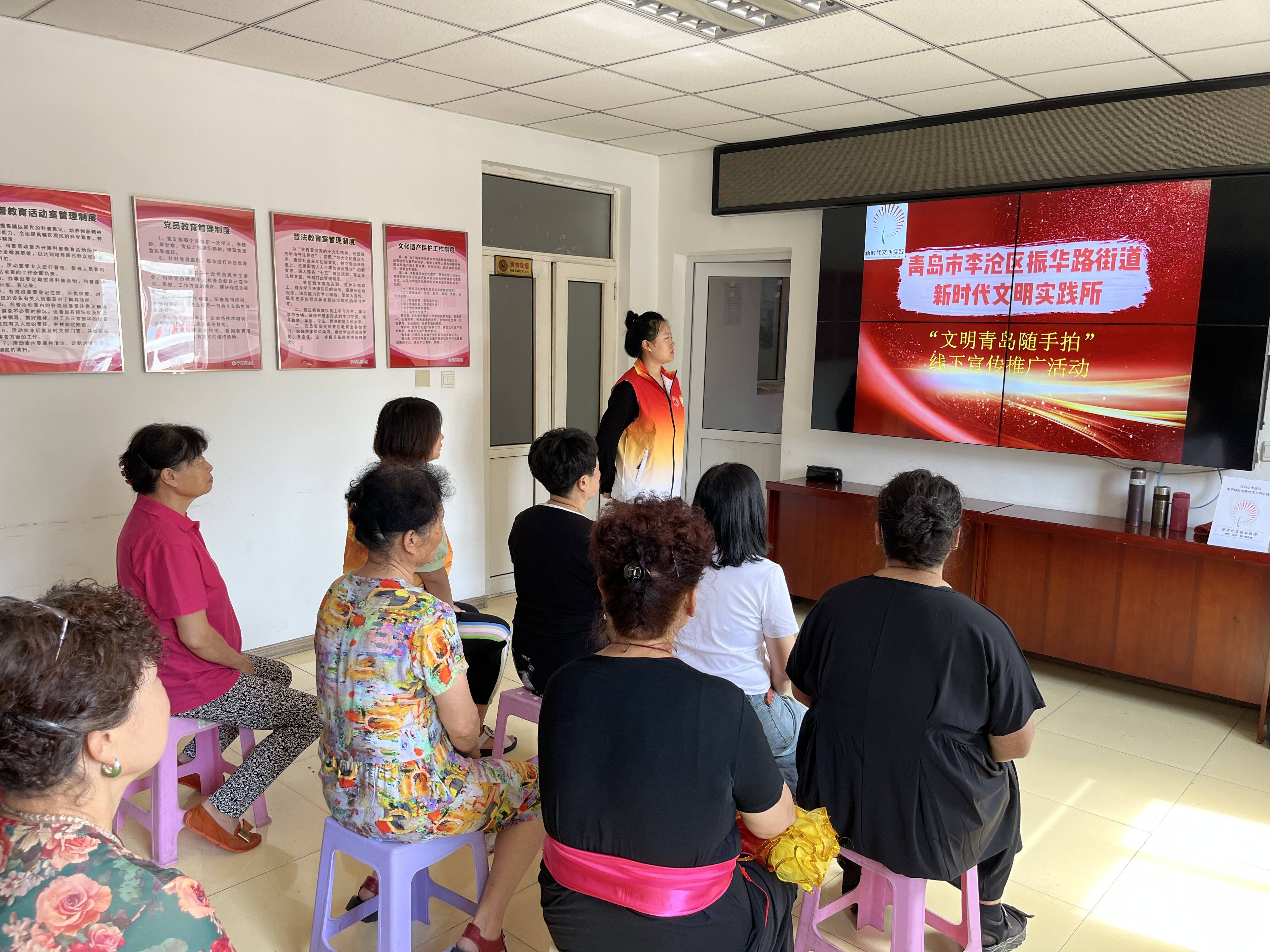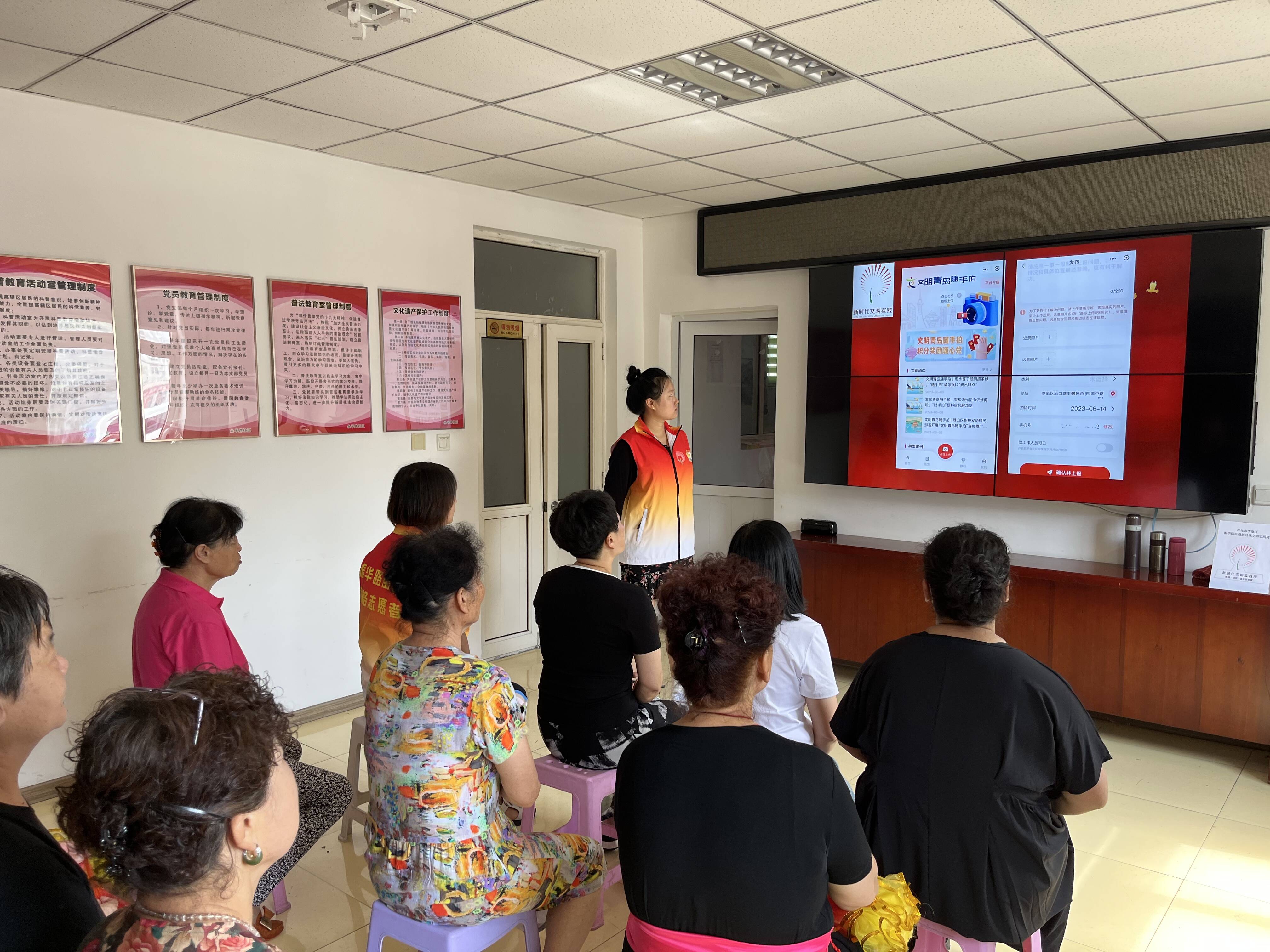 “各位居民,请打开微信的小程序,搜索‘文明青岛随手拍’,完成注册以后,在这个小图标可以上传问题……”在振华路社区活动室里,志愿者正在向居民宣传推广“文明青岛随手拍”小程序。“如果发现不文明现象,通过手机拍照上传,反映问题操作方便简单。而且,现在‘文明青岛随手拍’小程序还有了积分奖励功能,市民拍照反映问题,不但能及时解决身边的问题,还能领到暖心的红包。”