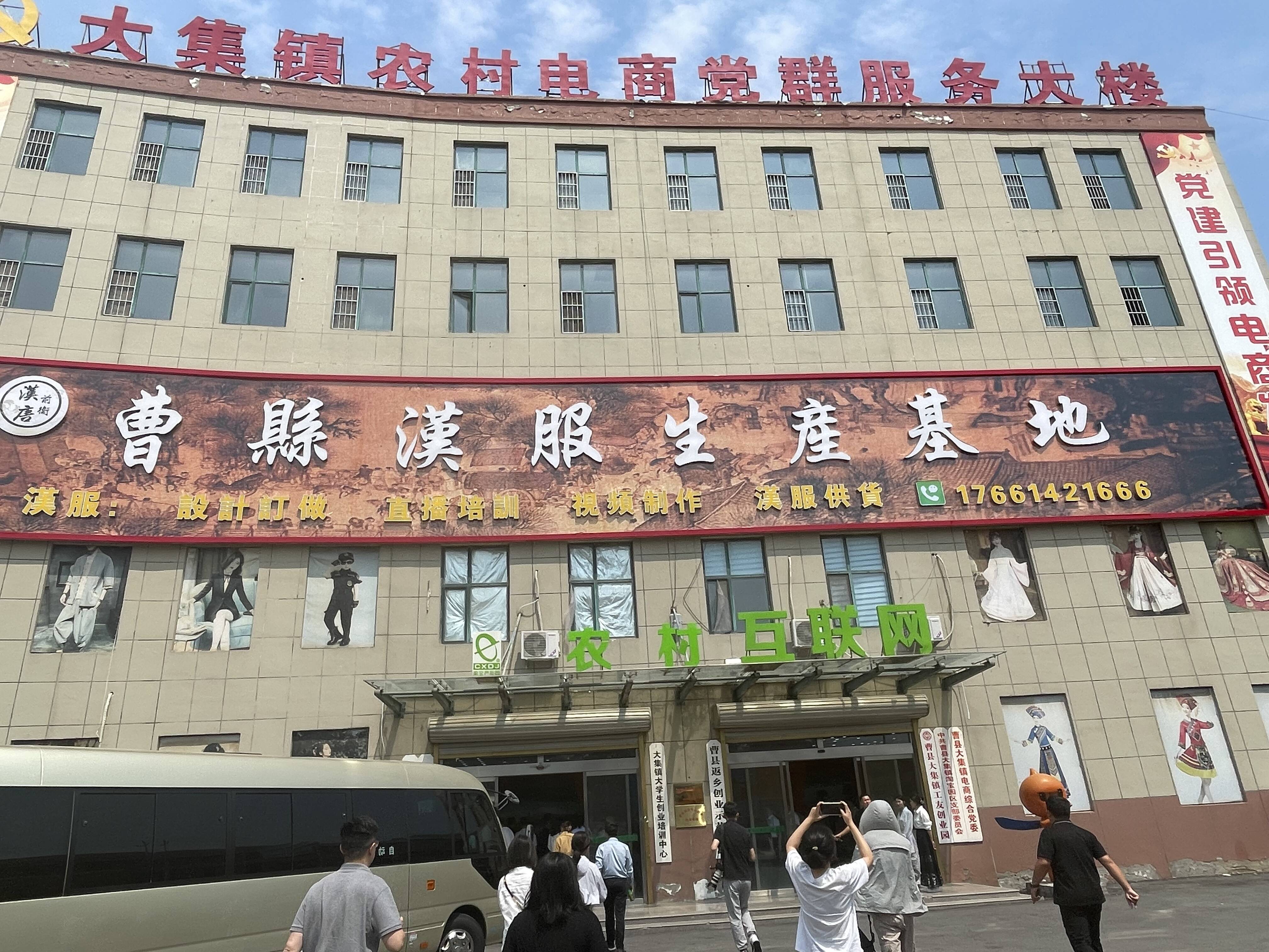 “目前,大集镇所有行政村全部被评为中国淘宝村,是全国最大的儿童表演服加工销售基地,全镇注册表演服饰有限公司3400家,网店20000余家,其中天猫店3000余家,全镇电商年产值近90亿元。”曹县大集镇党委书记李涛介绍,曹县正在以大集镇为核心区,将大集镇及周边75平方公里的6个镇街打造成小城镇联合体、电商产业联合体,作为引领全县、辐射周边的曹县农村电商产业示范区。推动电商产业迭代升级,强化政府引导服务功能,对区域内资源进行整合,推动镇域联动、产城融合发展,打造中国最大的演出服、汉服智造基地、销售基地。启动一个计划投资111.2亿元,占地1010亩的“e裳之都·中国华服智创城”项目。充分学习借鉴浙江义乌小商品市场发展经验,推进研发设计、生产加工、商贸物流、市场营销等一体发展,大力开发唐装、礼服装、现代服装、中山装等关联产品,拉长完善产业链条,把服饰产业做大做强。