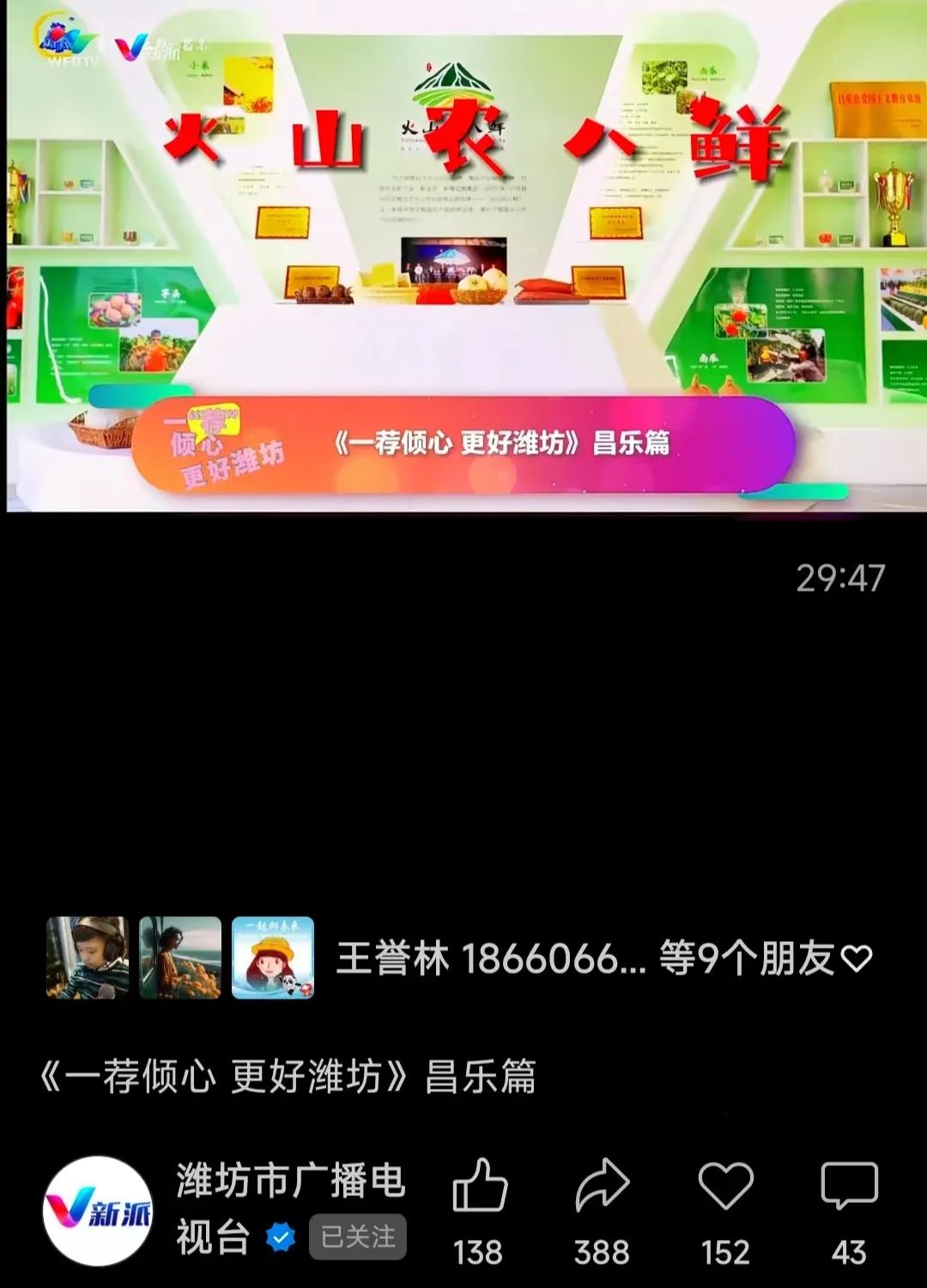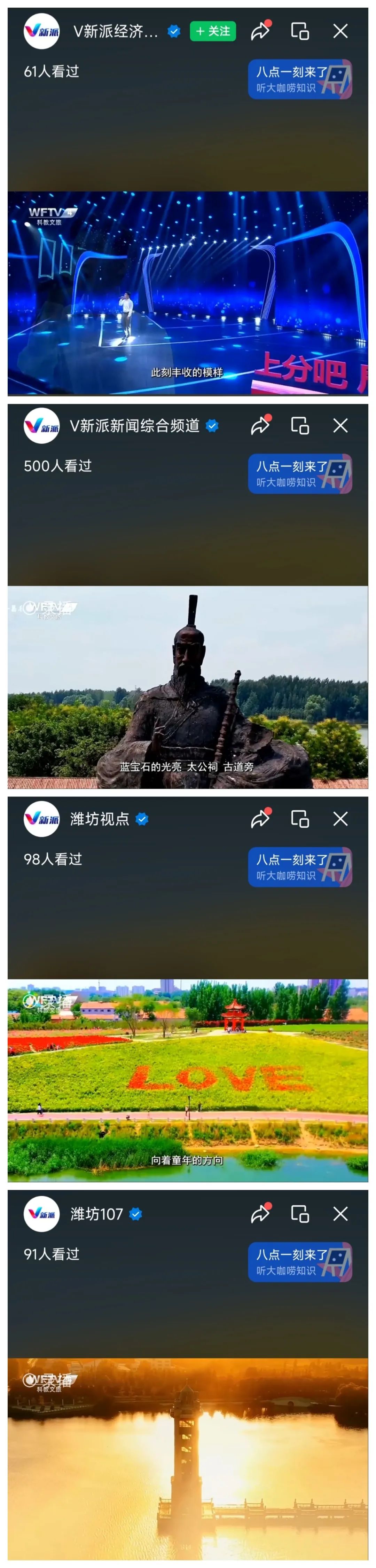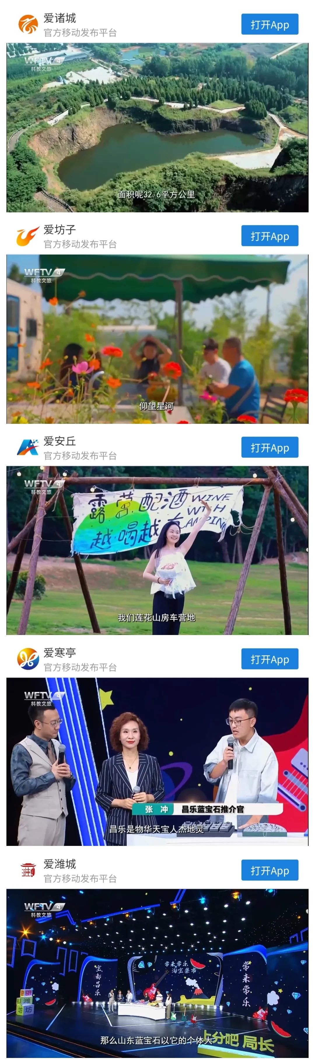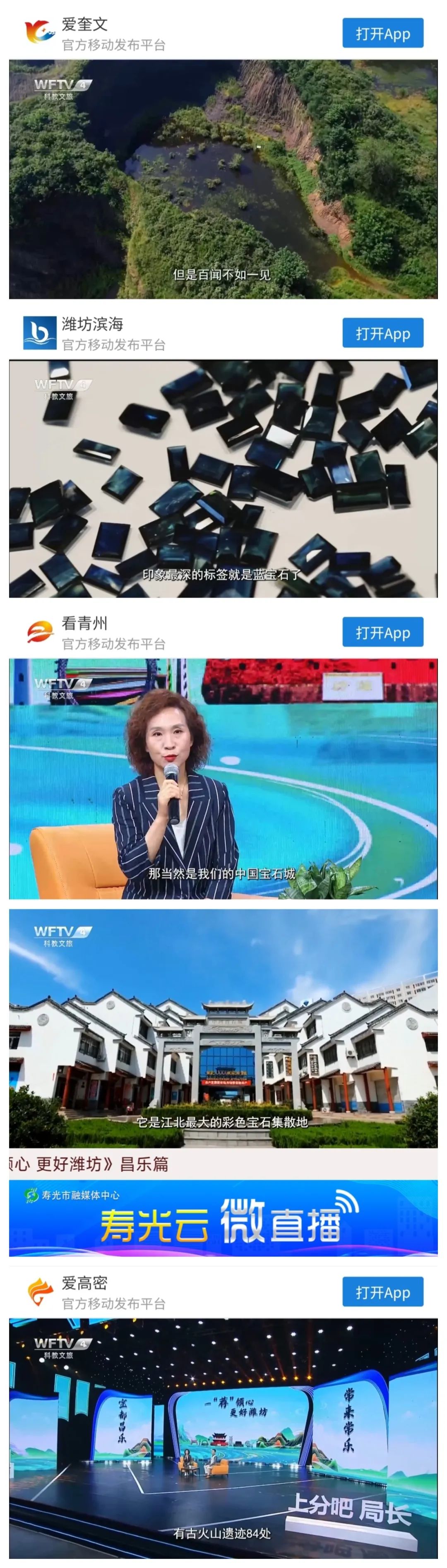 节目一经推出,央视频、人民号等央级媒体,齐鲁网闪电新闻客户端、大众网海报新闻客户端等省级媒体,今日头条等各大头部平台进行大力传播;潍坊市广播电视台科教文旅频道、经济生活频道、潍坊市网络广播电视台矩阵、潍坊市广播电视台融媒体矩阵、潍坊广电融媒体联盟各平台进行同步直播,全媒体推送、全域覆盖、全面呈现。