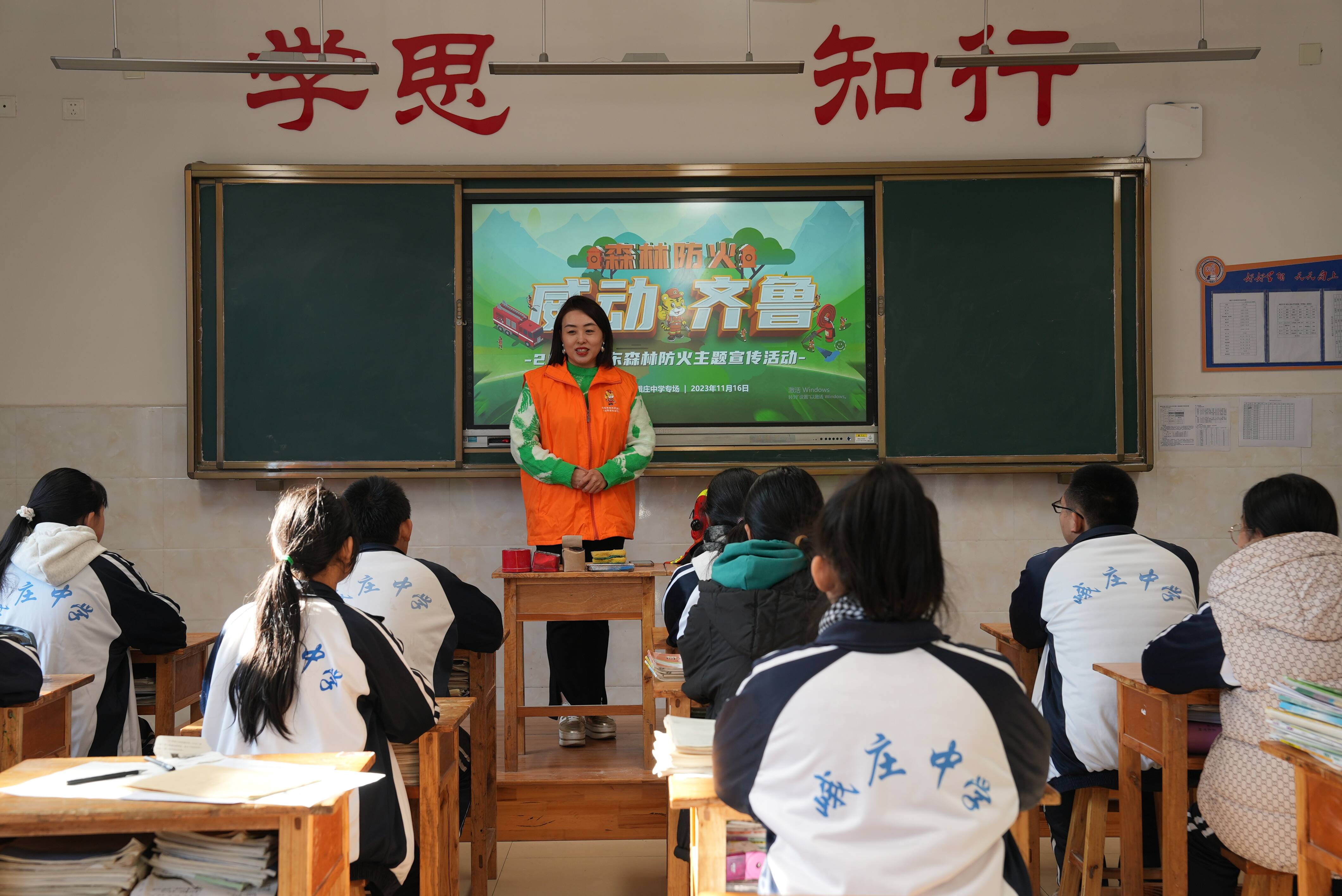 峨庄中学坐落在淄川区最偏远的东南山区原峨庄乡,位于大山深处。为增强中学生森林防火安全意识,提高防范森林火灾和应急自救能力,山东森林防火志愿服务队通过形象生动的讲解和实例,向七年级的同学们介绍了森林火灾的危害、发生原因以及如何预防和应对火灾等方面的知识,培养了他们的防火意识。