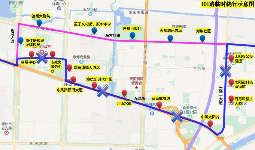 临时新增:太阳谷公交枢纽、金光集团、刁李贵小区、减河湿地风景区东方红路站、杨庄小学、德州养老示范城、崇德三大道尚德十一路7站;
