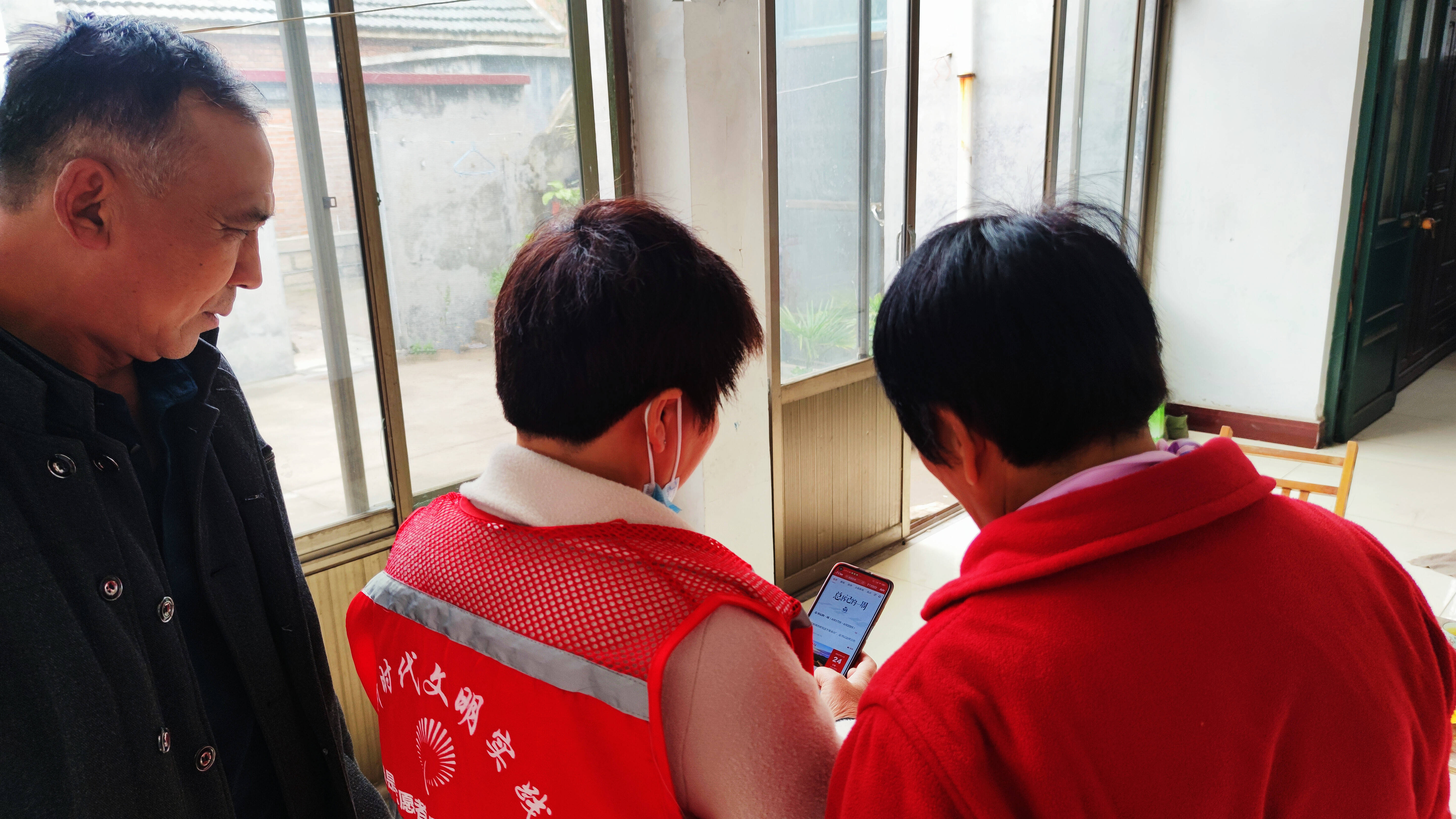 “大姐,今天我来就是想给你们看看我每天都在用的这个学习平台,你之前不是问我家里小孩听故事是从哪里听吗?就是这个‘学习强国’学习平台,上边的故事都是免费的,而且质量都很好,还没有广告。”前张村志愿者王秀真向村民王大姐介绍道,并手把手教她如何使用和操作学习平台。