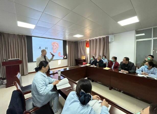 本次培训邀请了曲阜市中医药学校尹百顺老师讲解。尹老师详细讲解了耳廓的结构及分区、耳穴分布的规律、耳穴定位、压豆的注意事项和适用人群、使用时间、伴随症状、观察内容等。通过现场实操的方式,从耳与脏腑经络、耳穴判断疾病、治疗疾病、准确定穴等方面向医院参训人员进行演示,大家纷纷表示受益匪浅。