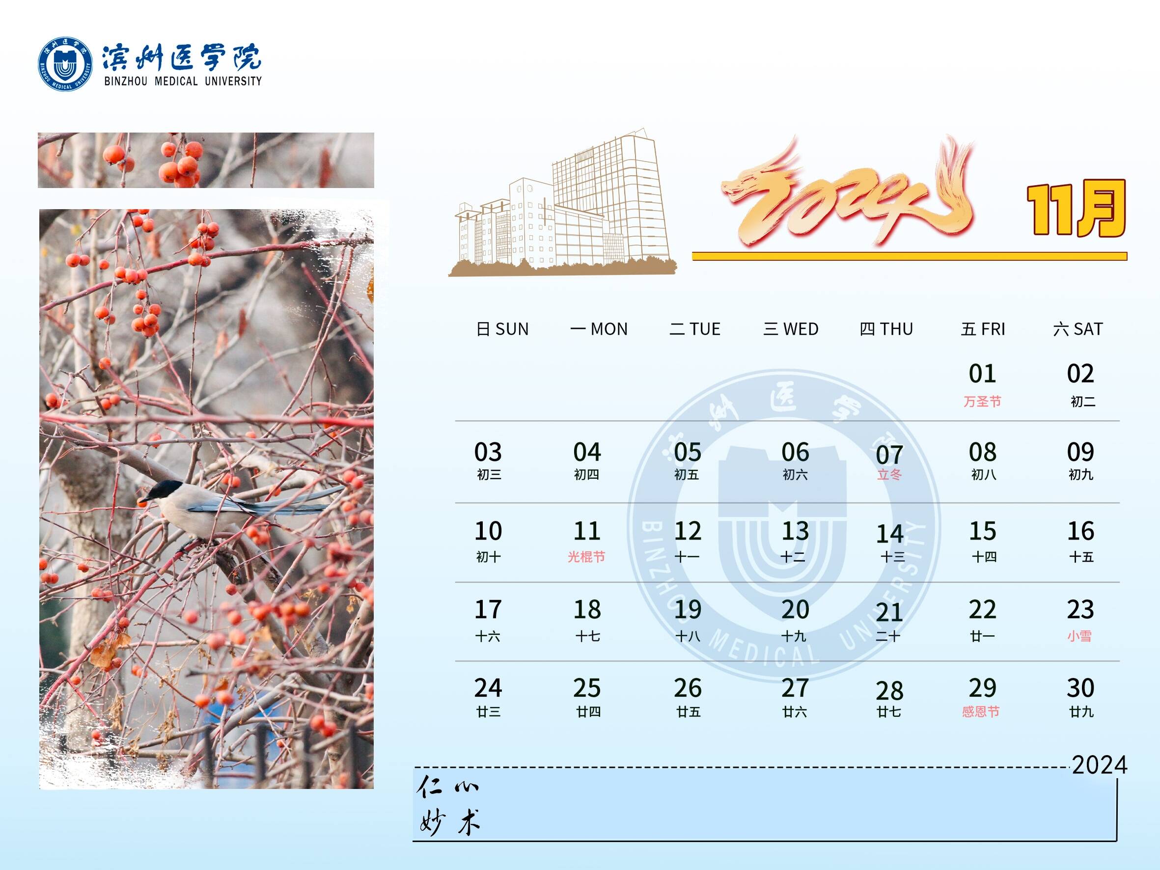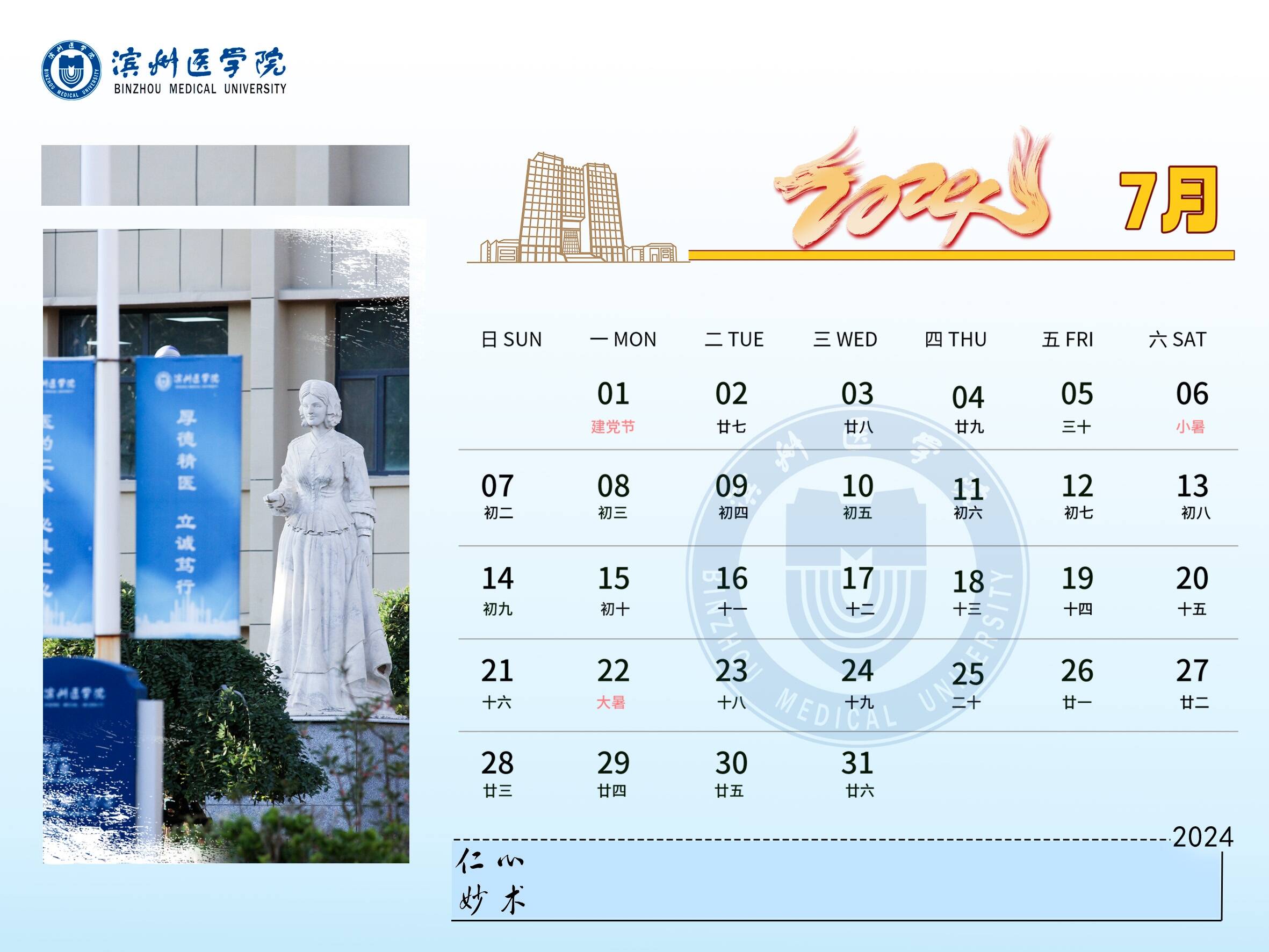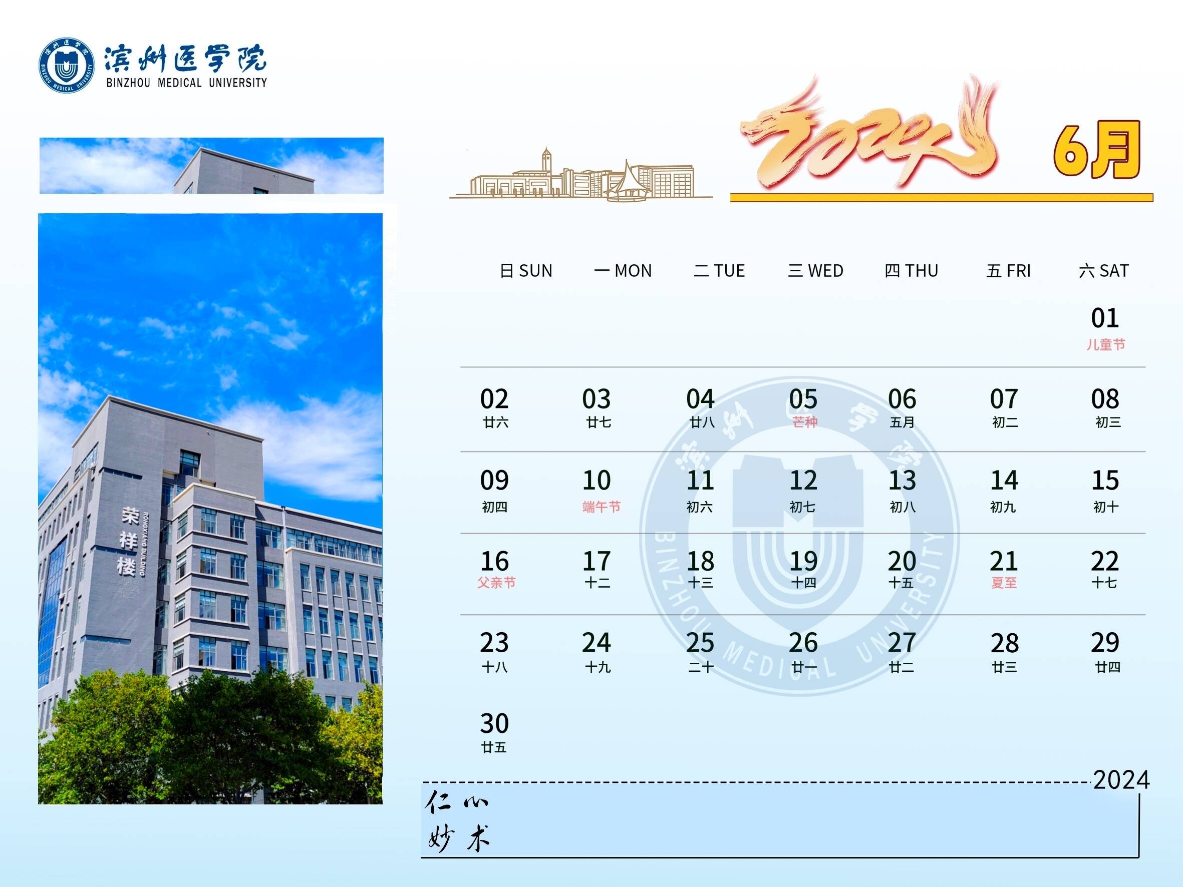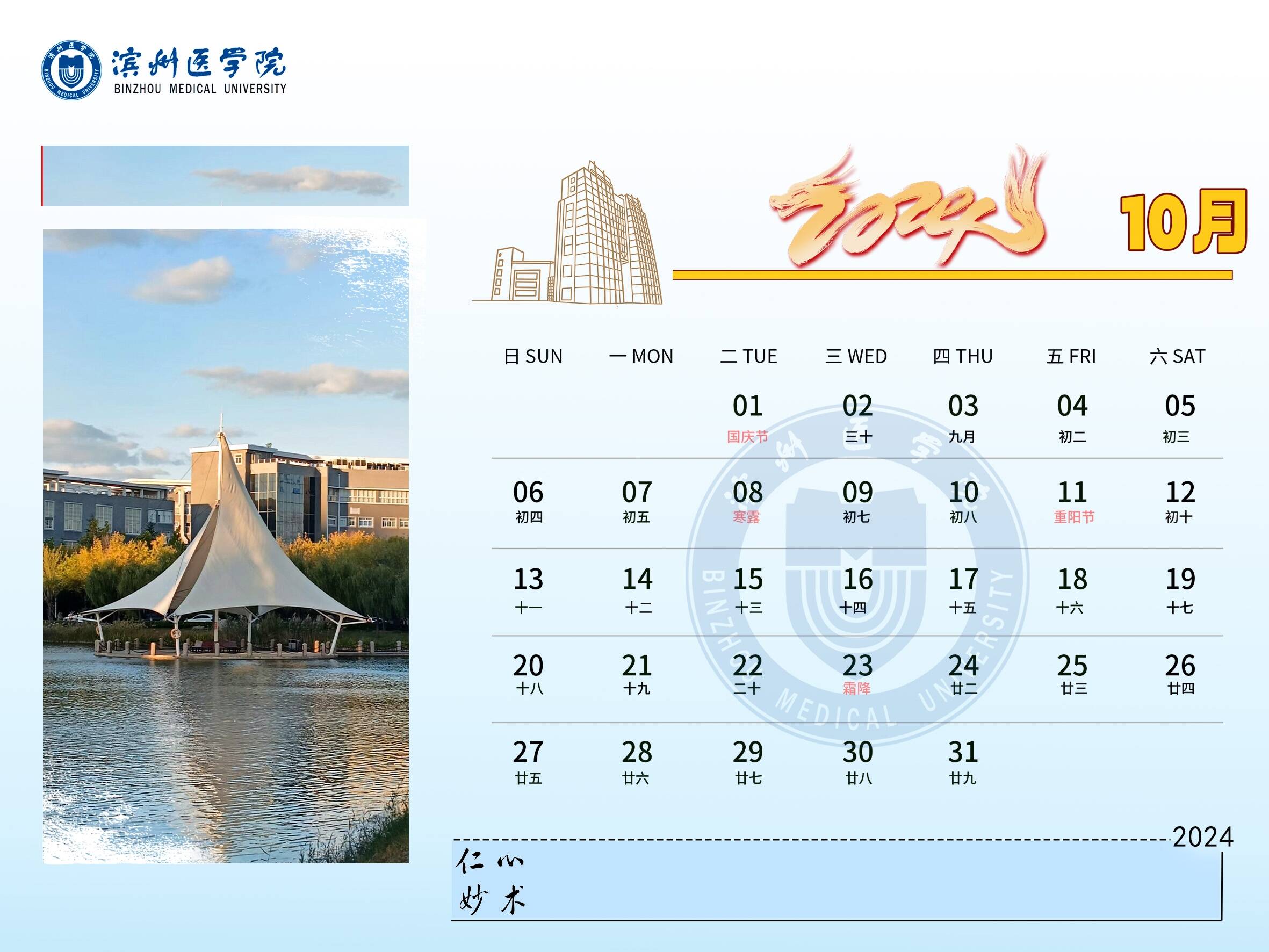 龙腾盛世,春风送爽。2024年,BMUers将继续开拓创新,奋勇争先,快来与小蜜一起查看滨州医学院2024新年台历吧!