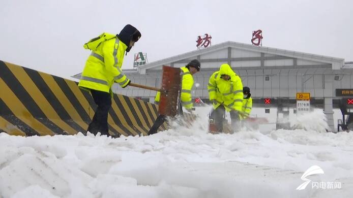 工作人员正在集中清理站内广场、匝道积雪,避免道路结冰。荣潍高速坊子收费站副站长窦玮表示:“我们备足了充足的除雪防滑物资。降雪后我们第一时间组织人员除雪,最大限度确保道路的安全畅通。”