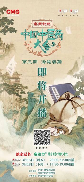 《中国中医药大会》第三期《泽被婴孺》,3月15日(周五)20:00档,央视综合频道(CCTV-1)首播;3月18日(下周一)17:30档
