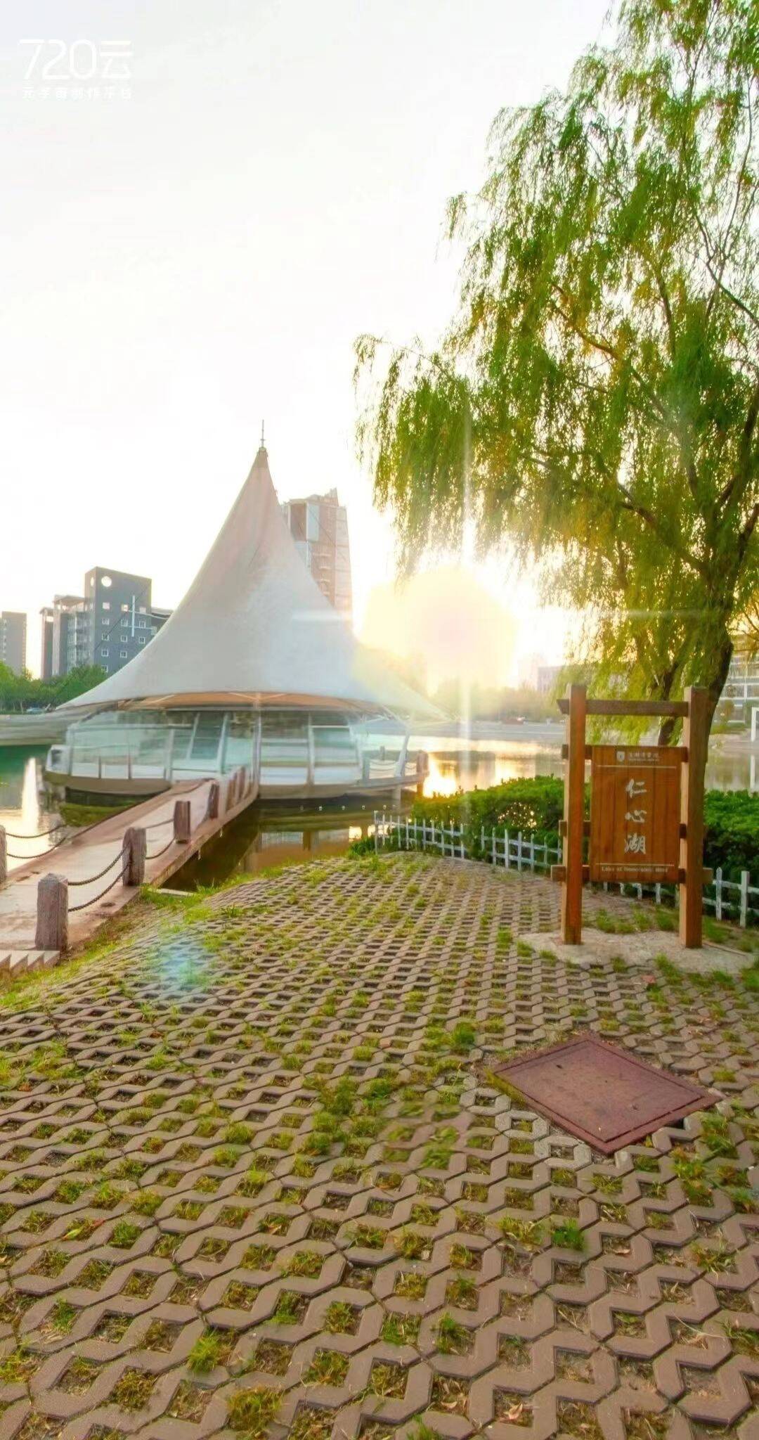 # 仁心湖 #“仁心妙术”此为滨医校训。用仁心装点品行,BMUers如仁心湖一般,清澈待人,尽展医学生的美好。白帆静静地笼罩在凉亭上,为暂歇的BMUers,遮阳避雨