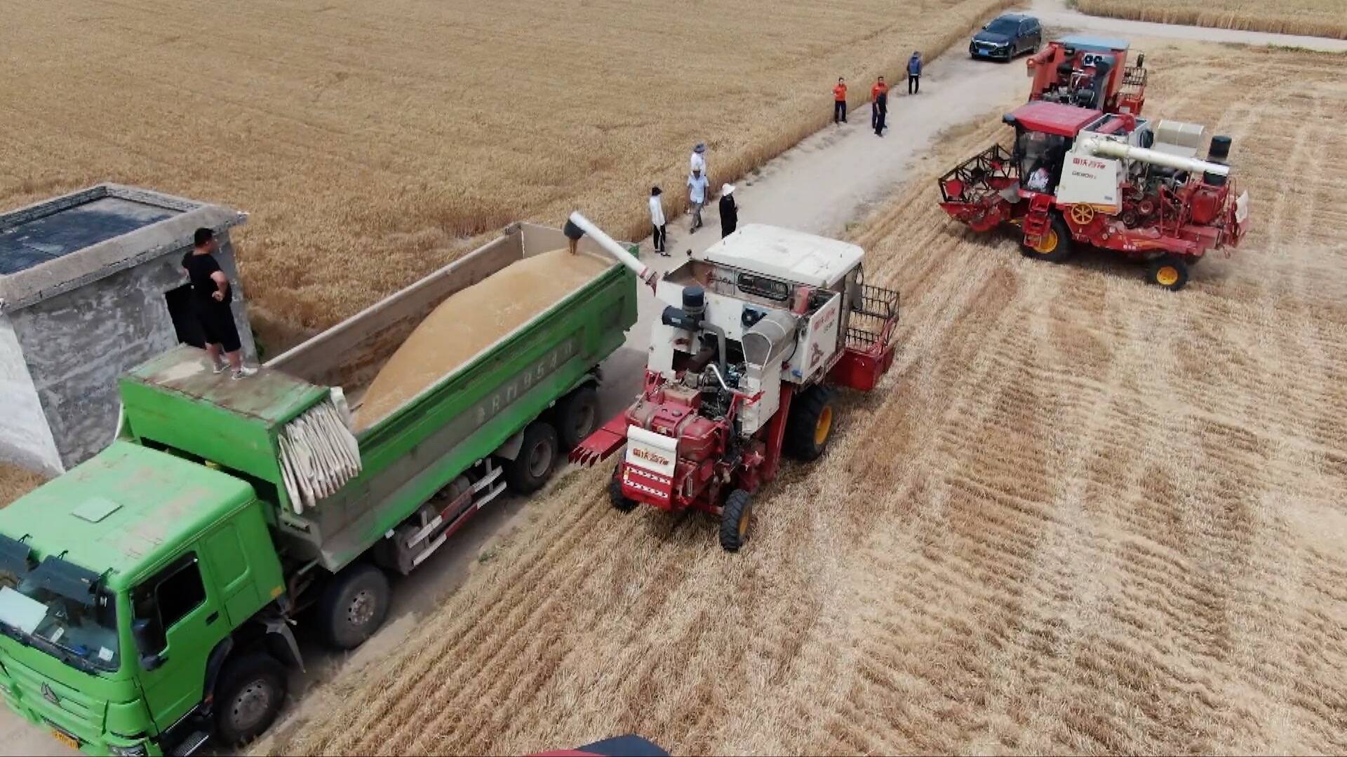 同样在定陶区马集镇段刘庄村也是一派繁忙的丰收景象,为确保夏粮丰产丰收,马集镇组织志愿者500余人,分布在全镇60多个麦收点,就近协调群众用车用人需求等贴心服务;村民郭长庆看着饱满的麦粒涌入运粮车内,禁不住满心欢喜。