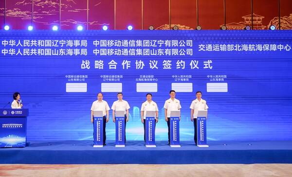 辽宁海事局、山东海事局、辽宁移动、山东移动、交通运输部北海航海保障中心共同签署了《五方战略合作协议》。该协议将有力推进辽鲁航线5G网络建设维护、5G海洋应用实践、海上事故搜索救援等工作,以实际行动助力海洋强国建设。