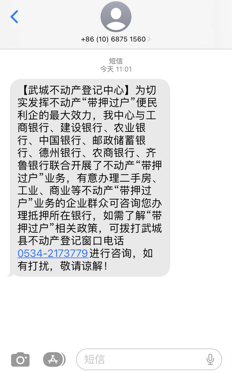 二是工业、商业“一对一”,惠企短信送到家。不动产登记工作人员通过数据库筛选工业、商业类项目,梳理辖区工业、商业类带押不动产明细,向相关企业推送“带押过户”惠企短信,引导企业利用“带押过户”盘活工业、商业不动产,切实提升企业改革事项知晓度。