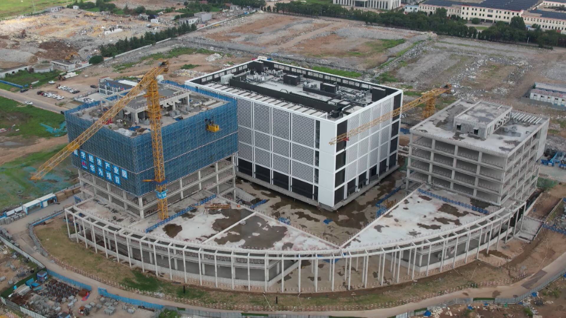 在优美的扇形布局中,三栋单体建筑依次排列、拔地而起,这是胶州数字经济产业园的项目现场,其数据中心项目已于6月30日交付,正在安装调试设备,创孵化楼宇主体结构已封顶,即将转入二次结构施工阶段。该项目与华为云、浪潮云深度合作,打造上合大数据中心、上合网络数据安全中心、上合大数据交易中心,面向全球提供算力、存储、网络等数字服务,为建设上合工业互联网国际化特色先导区夯实基础。