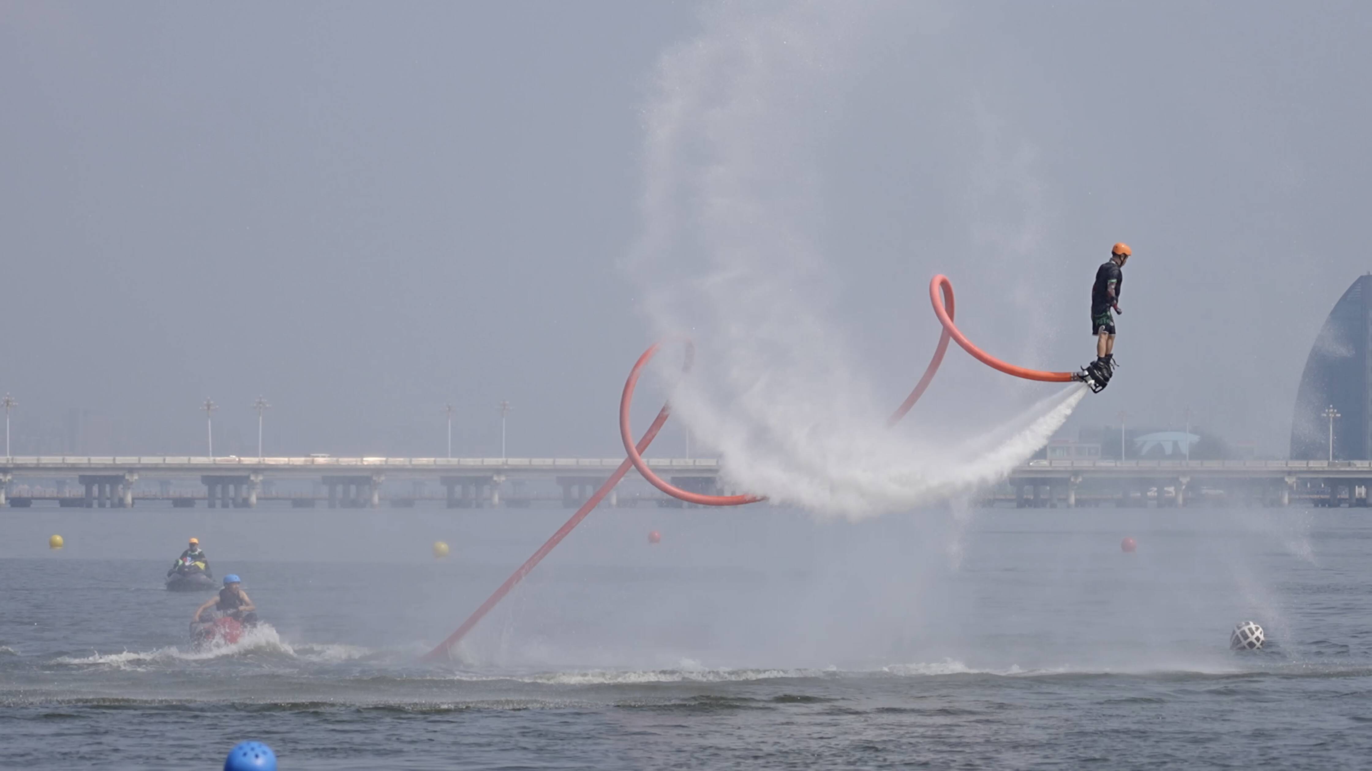 据了解,比赛为期2天,参赛选手们开展了坐式水上摩托限制一级竞速赛、立式水上摩托公开级竞速赛、水上飞人花样赛等五个比赛项目,为市民和游客朋友们带来一场高水平的水上运动盛宴。本次比赛由国家体育总局水上运动管理中心、临沂市人民政府共同主办,临沂市体育局、临沂市园林环卫保障服务中心承办,是国内规模最大、水平最高的摩托艇赛事之一。