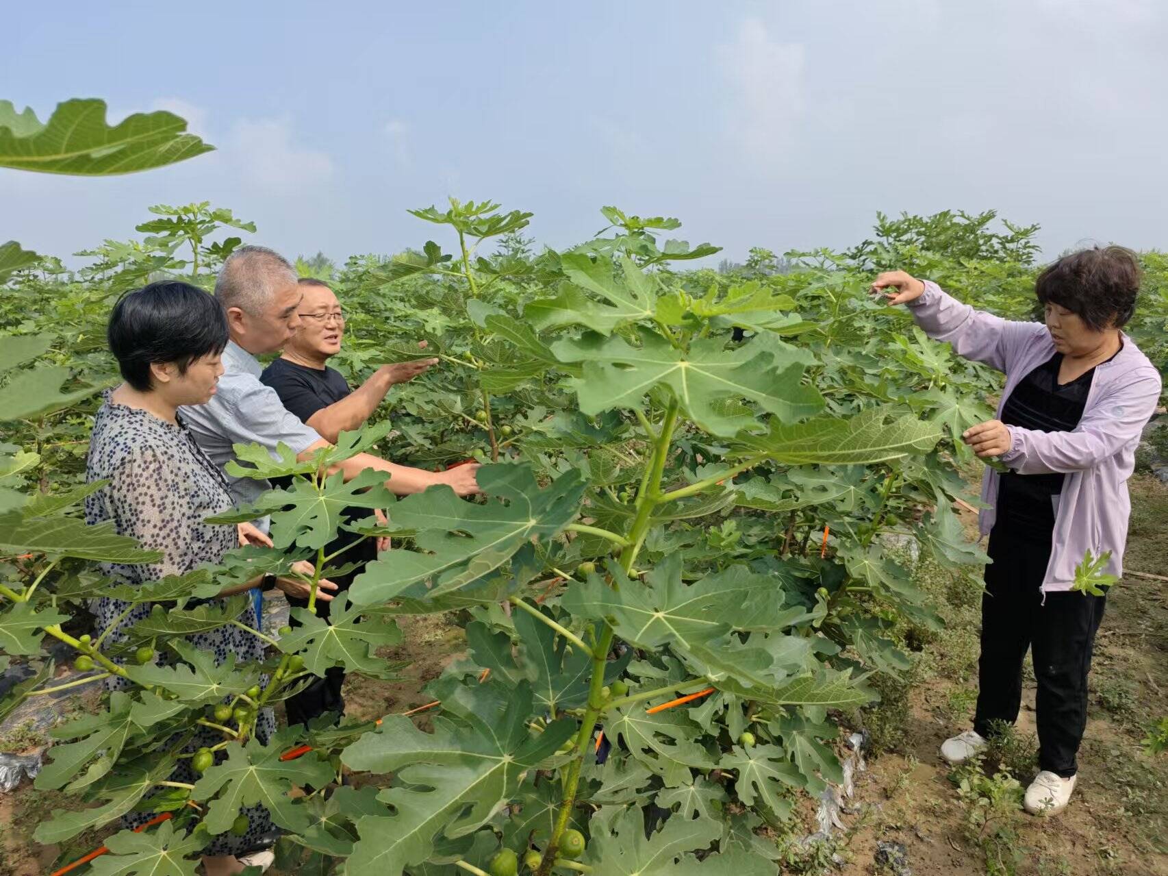 在种植基地,技术人员对无花果的种植规模、品种培育、生长状况等进行细致观察和评估。目前,该基地种植多个无花果优质品种。技术人员通过与基地负责人和农户交流,了解到今年无花果生长态势良好,但也面临着一些挑战。针对发现的问题,技术人员为种植户进行详细讲解和现场示范,指出要合理规划,以保证每株无花果都能充分吸收阳光和养分,并提醒种植户要注意及时修剪枝条,保持树冠的通风透光,促进果实的生长和发育,并对产后销售、产能效益等问题进行沟通探讨。