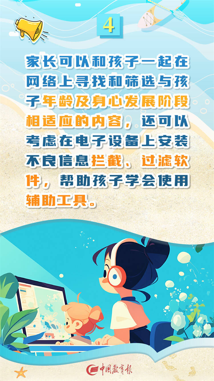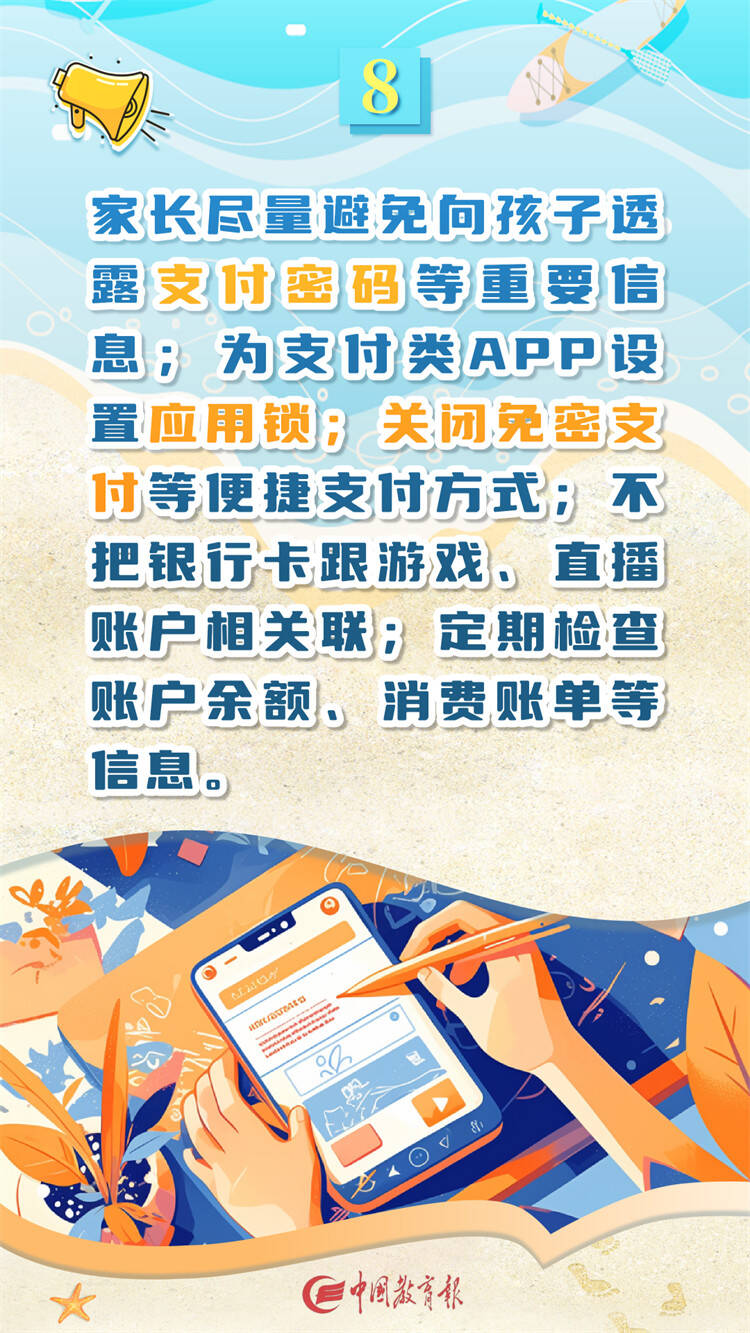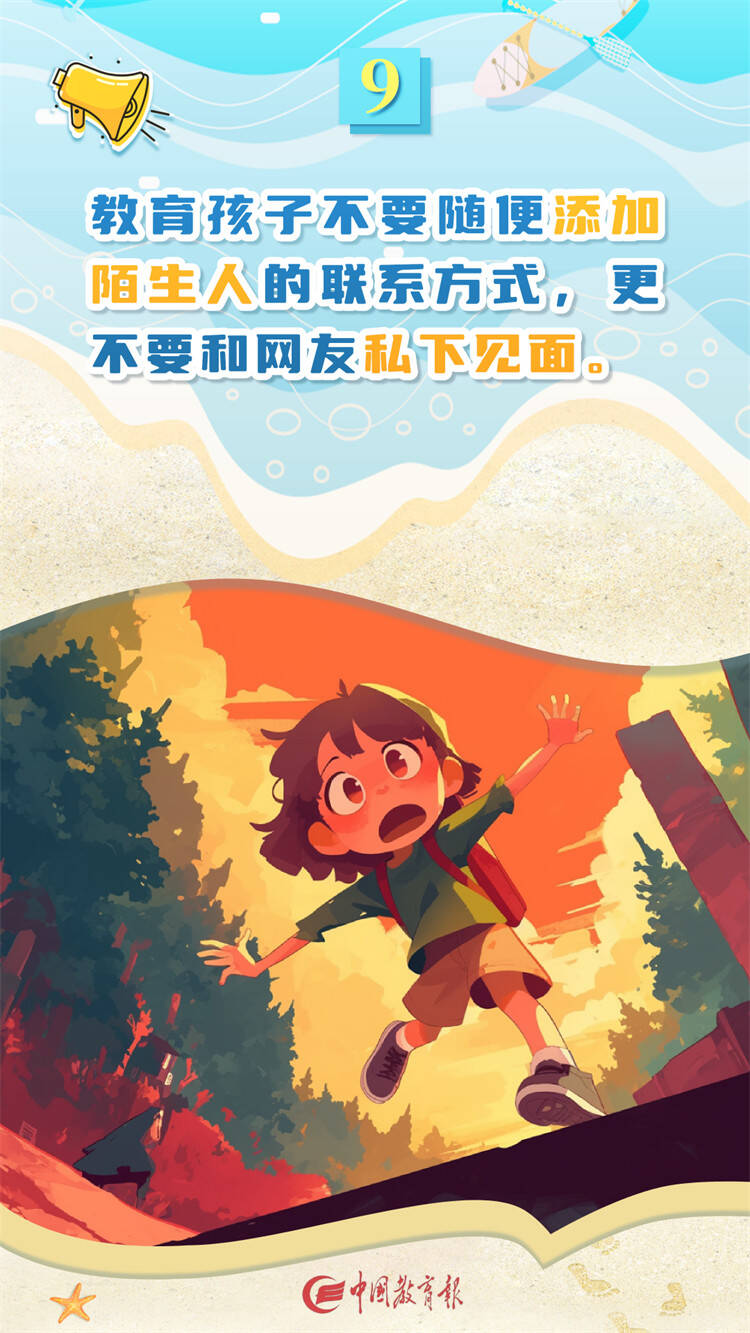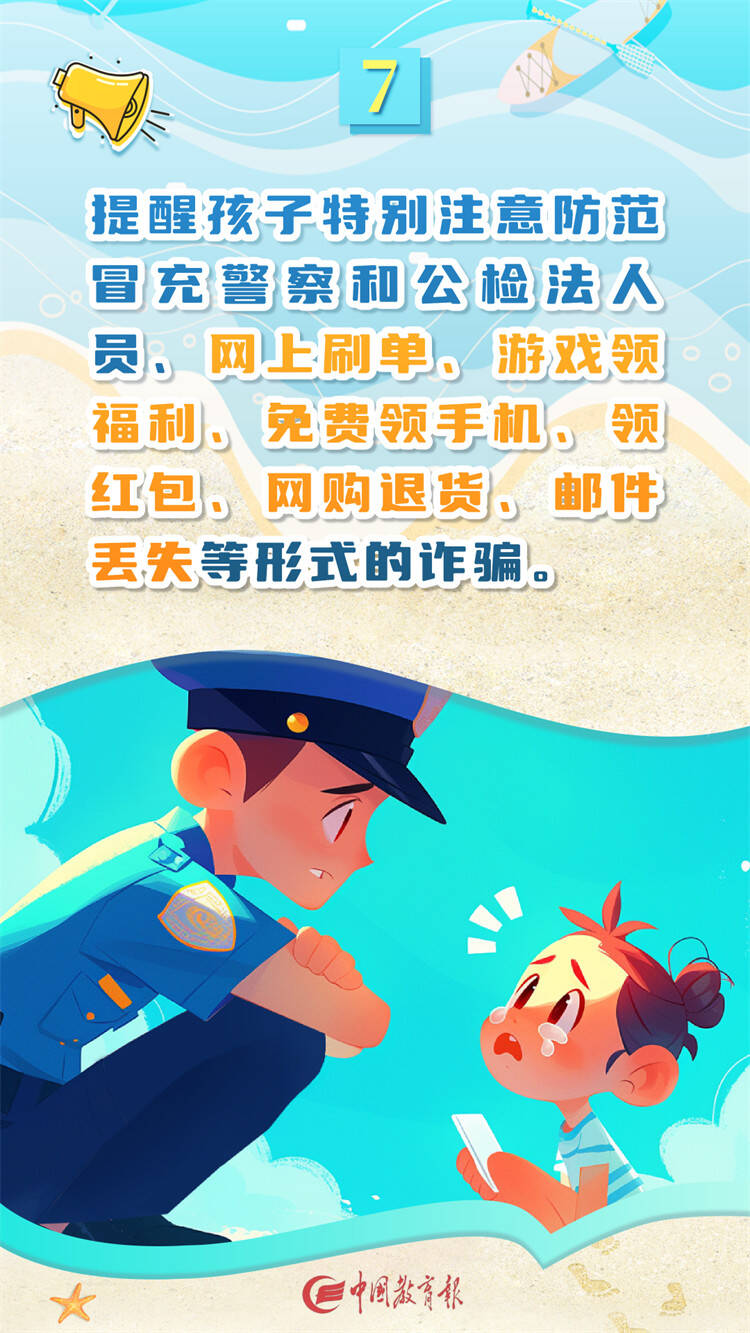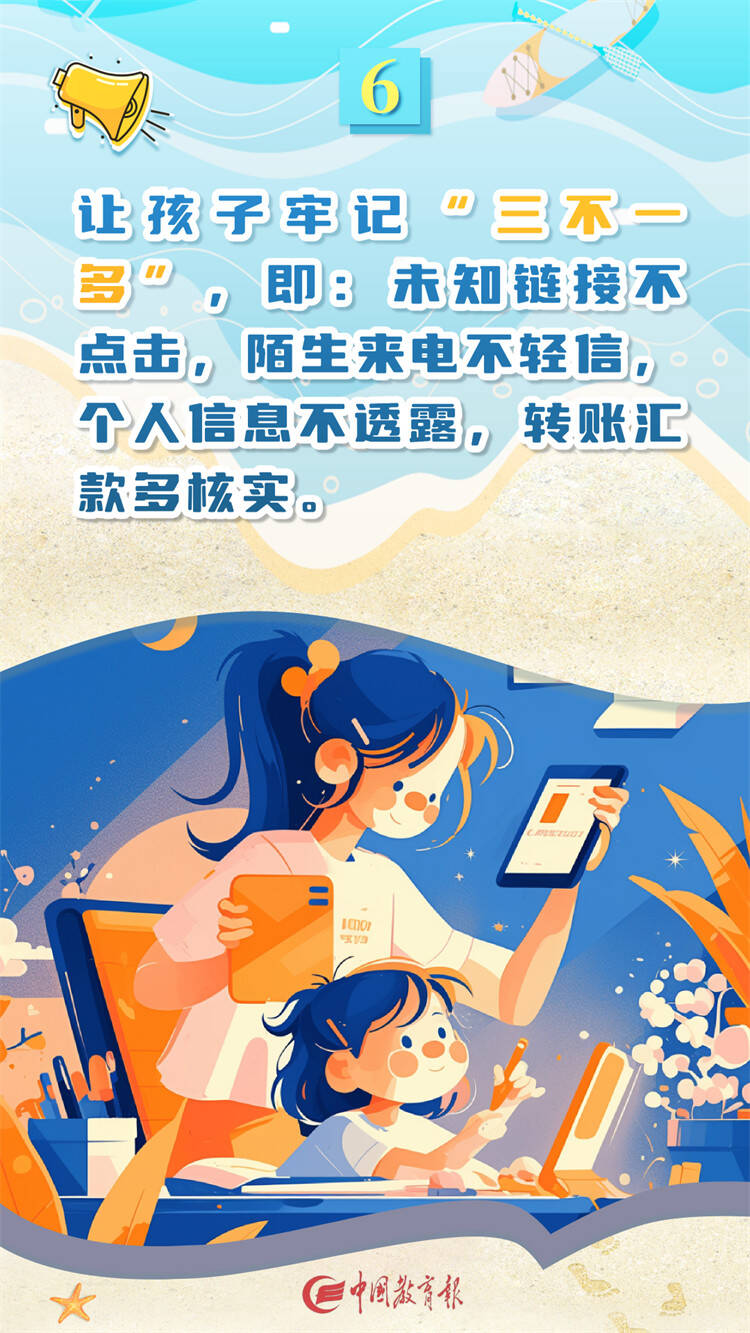 齐鲁网·闪电新闻8月16日讯 暑假在享受假期的同时网络安全问题也不容忽视,当前网络诈骗频发,家长要密切关注孩子的上网过程,教给孩子必要的网络安全知识,10条暑期网络安全指南一起来看。(图片来源:中国教育报)