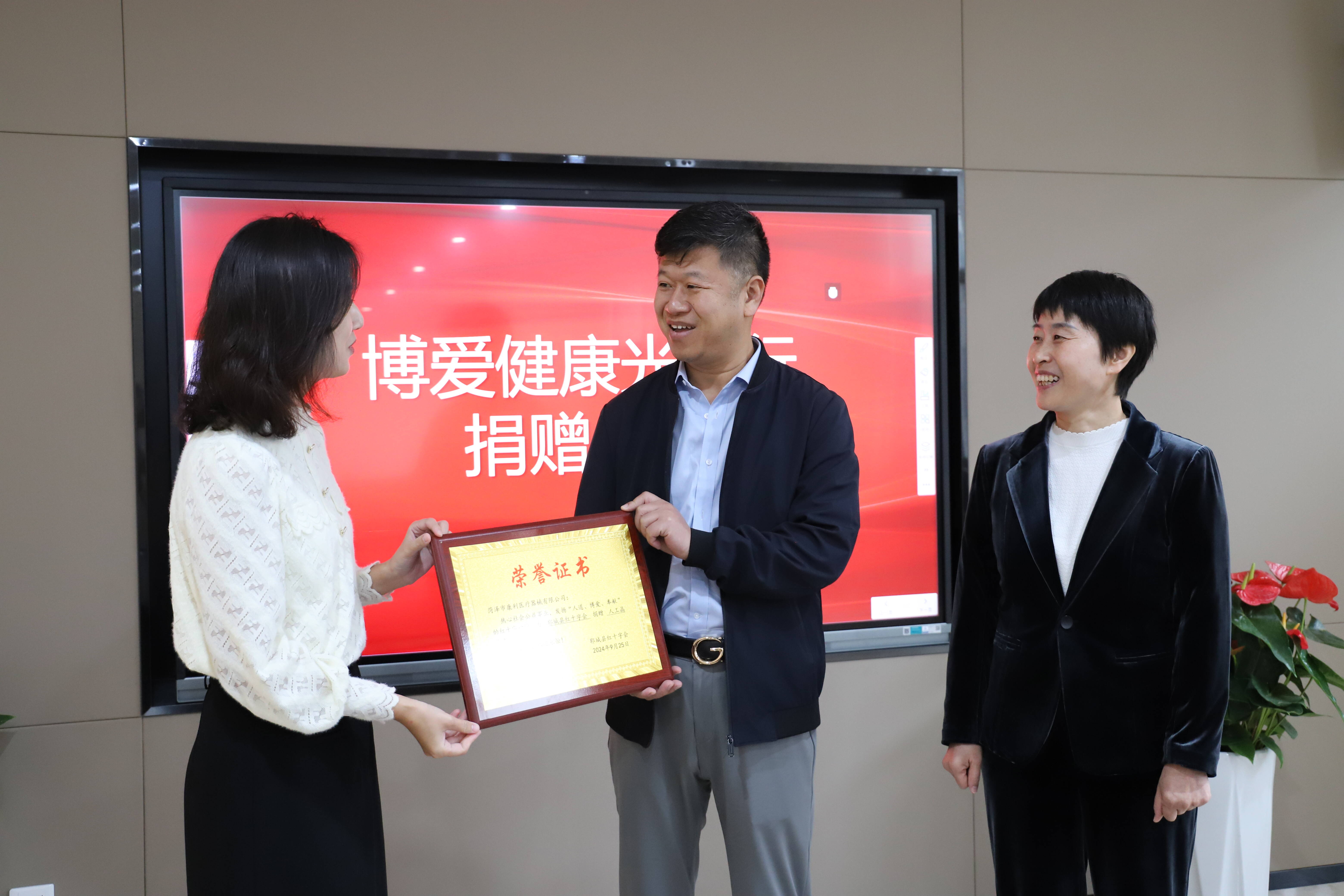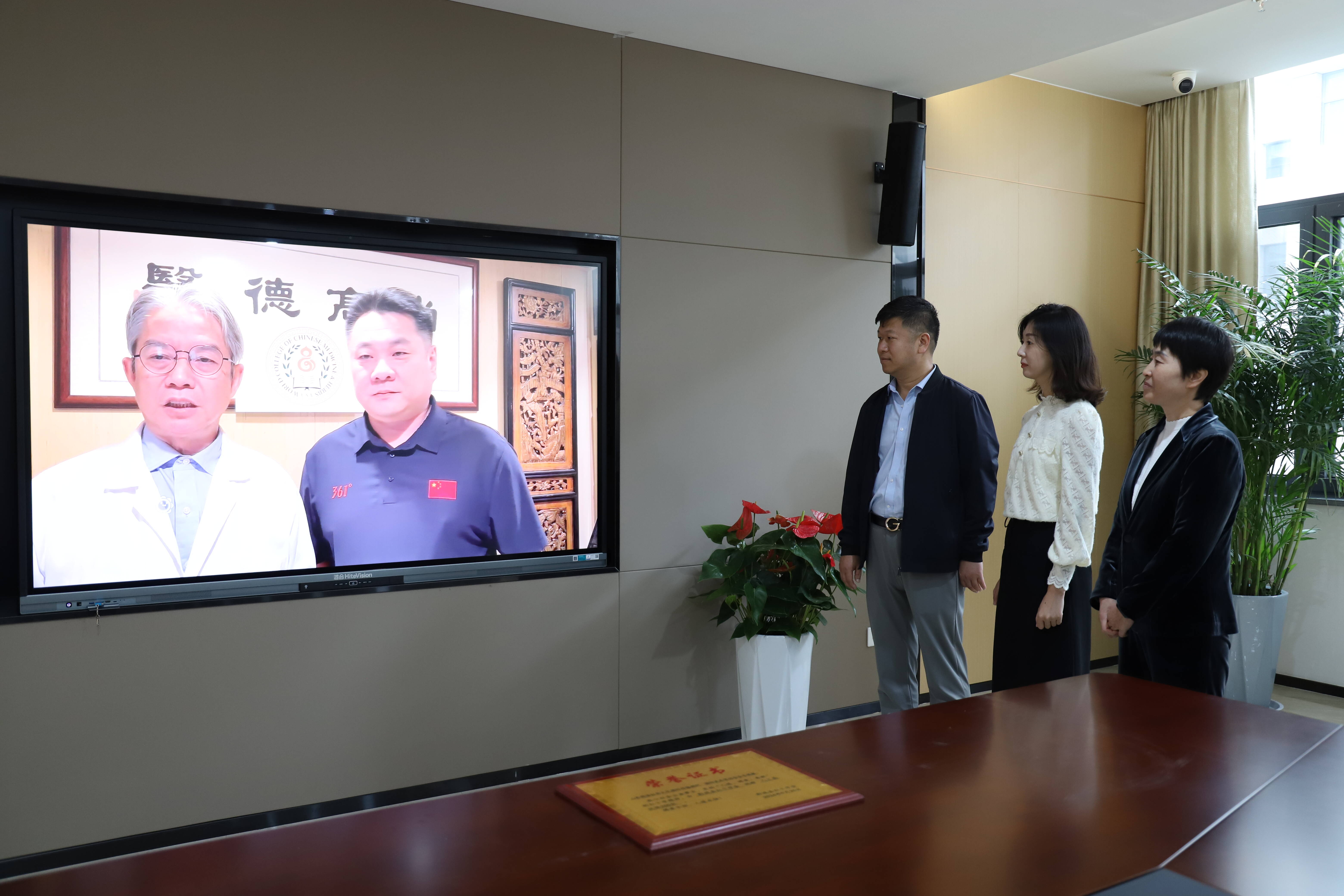 捐赠最后还通过视频连线到侯敏,他正在美国中医药大学与校长张伟超一同见证这场爱心捐赠。他说,“近年来,华人华侨和中国企业在全球医疗健康事业发展中不仅是参与者,更是引领者,这也让世界瞩目,今天成功给我的家乡捐赠感到很激动,以后会继续肩负使命,在增进文明互鉴、守护健康福祉方面作出应有的贡献。”
