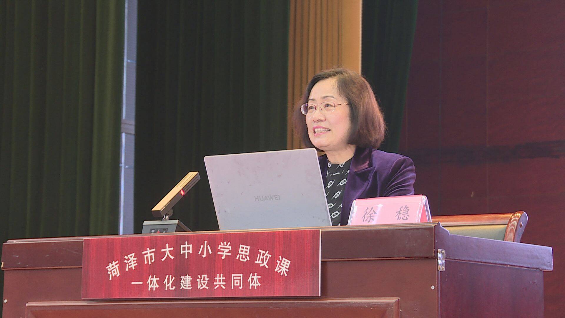 徐稳以《善用菏泽牡丹文化,讲好大中小思政课》为题,详细介绍了大中小学思政课一体化的提出过程,指出一体化建设的重点,深入剖析菏泽牡丹文化的精神特质和时代价值,深刻阐述了把牡丹文化融入思政课教学、融入思政课一体化建设的实践路径。