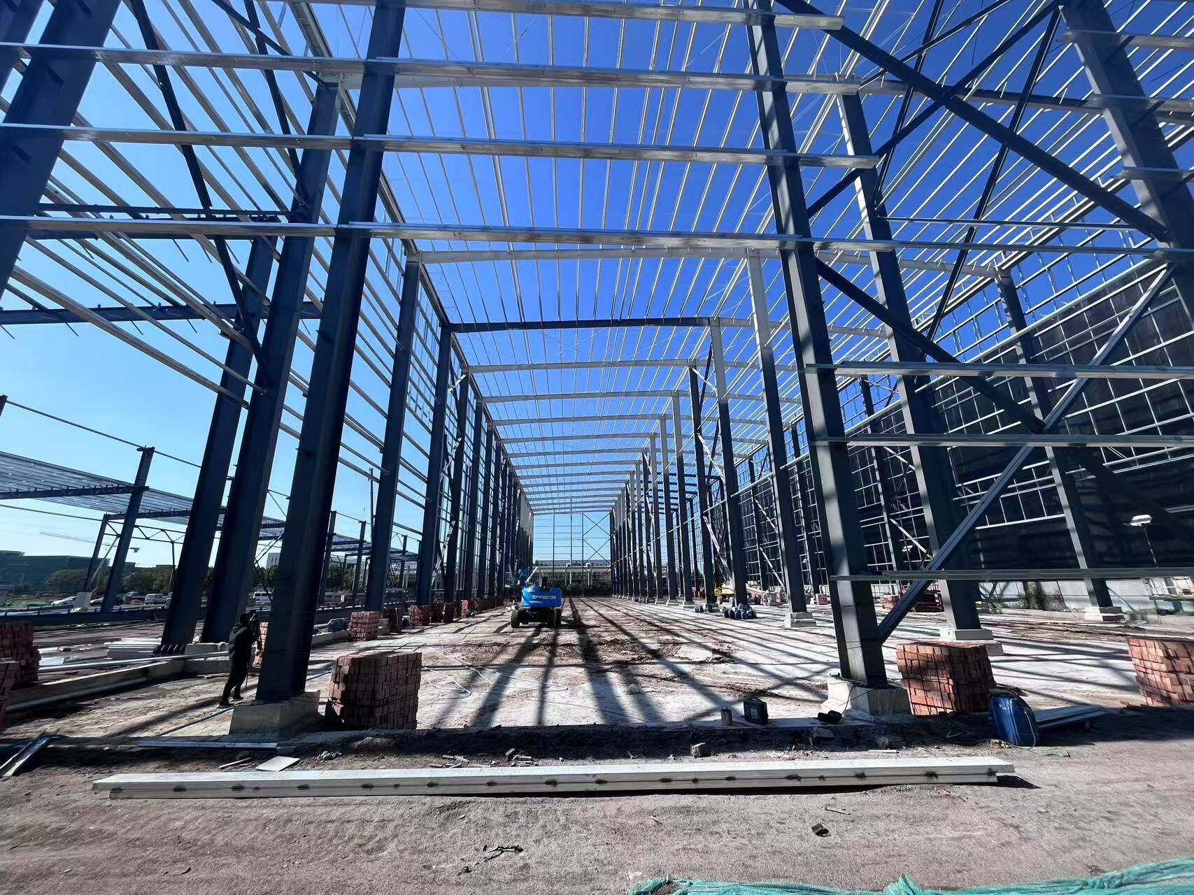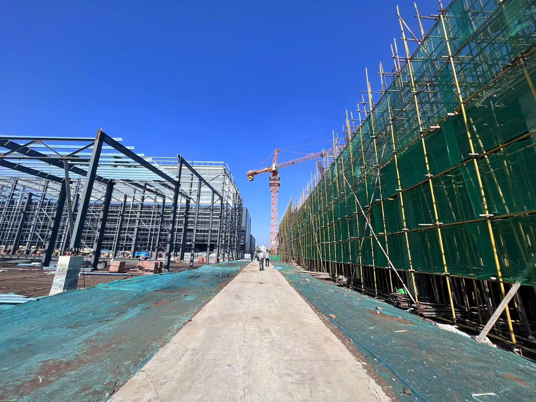 玉马遮阳科技股份有限公司规划建设部主任孙成信介绍,“我们项目规划了3个单体,1号车棚、2号智能库、12号车间。1号车棚屋面板已经安装完成,2号智能库钢结构主体已经完成,12号车间主体也已经完成。”