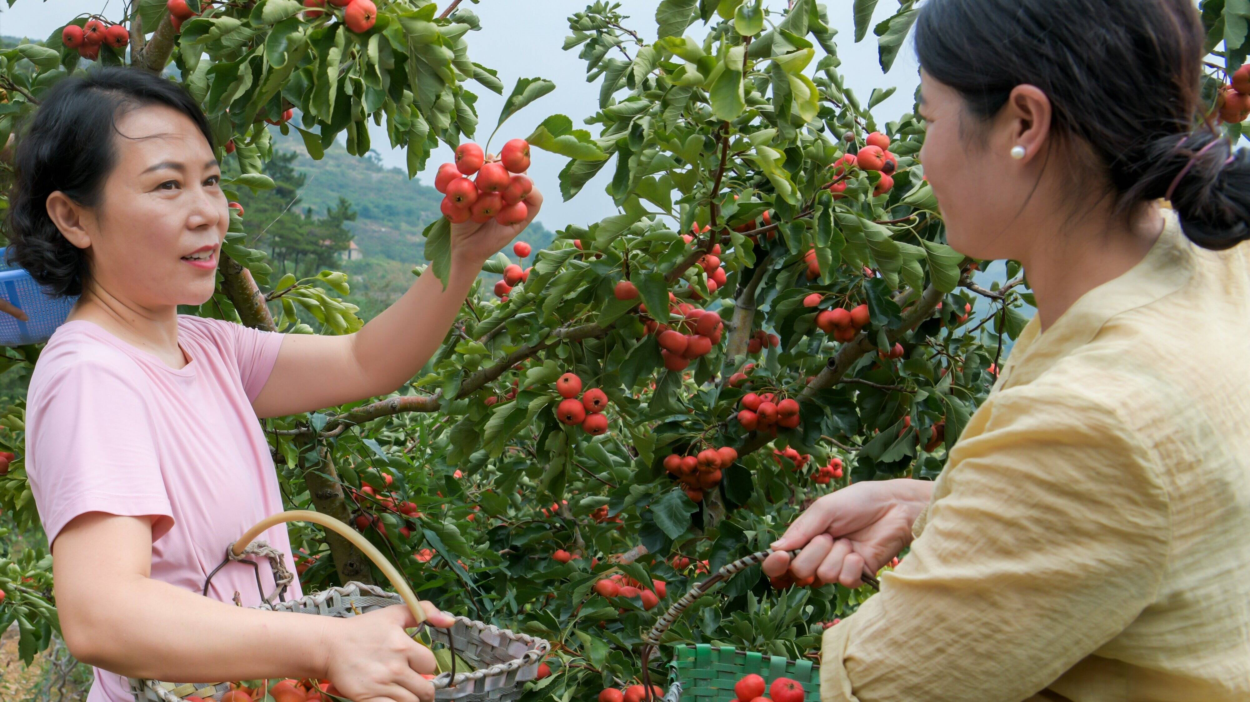 采摘、收购、冷藏、切片、加工……张家棚村的山楂深加工产业链不断延伸,进一步促进了果品产业提档升级。目前,该村周围有平邑鲁蒙果品保鲜公司等,围绕山楂等农产品产业,带动村民致富增收。