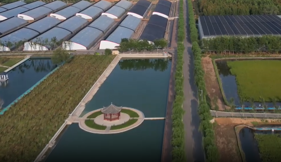 齐鲁网·闪电新闻9月24日讯 近日,记者在东平县现代农文旅高科技融合示范园看到,一排排的设施农业大棚,在阳光的照耀下熠熠生辉,生态渔业区的鱼儿欢快地游来游去。