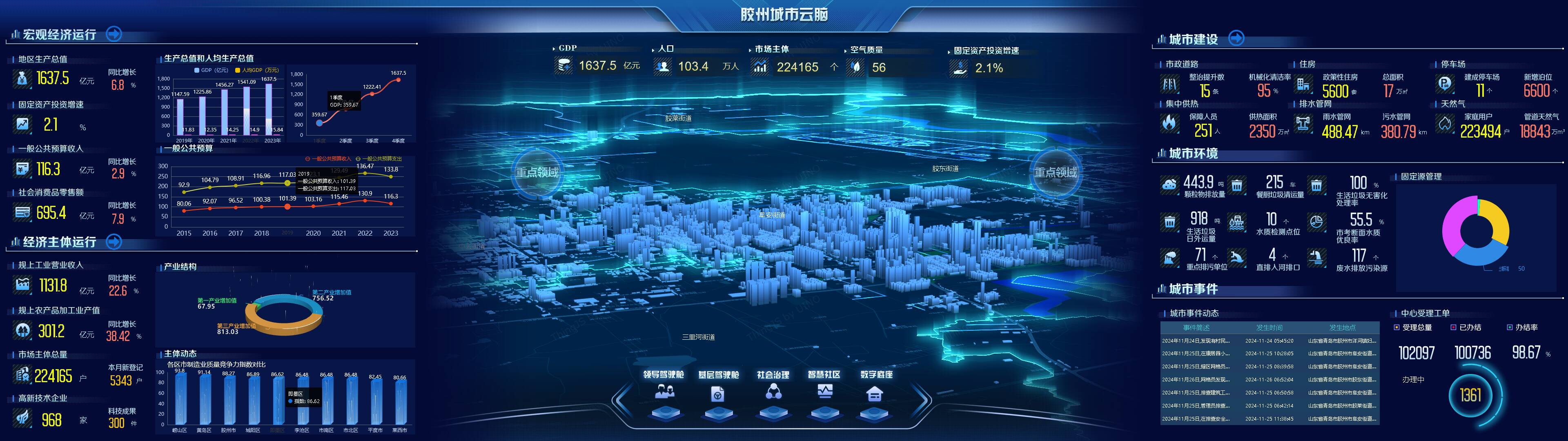 “我们梳理对接全市综合执法、生态环境、城市管理、智慧交通等14个政府决策系统平台,通过系统对接、数据共享,汇集全市政务资源数据与社会数据进行匹配、对接,构建政府决策支撑体系。”胶州市大数据和智慧城市建设中心副主任魏克颖表示,截至目前,胶州城市云脑已汇聚36个部门、总量达7.2亿条的数据,通过“汇、治、存、用”四维度管理,形成了人口库、法人库等权威数据资产,为城市治理提供了精准的数据支持。
