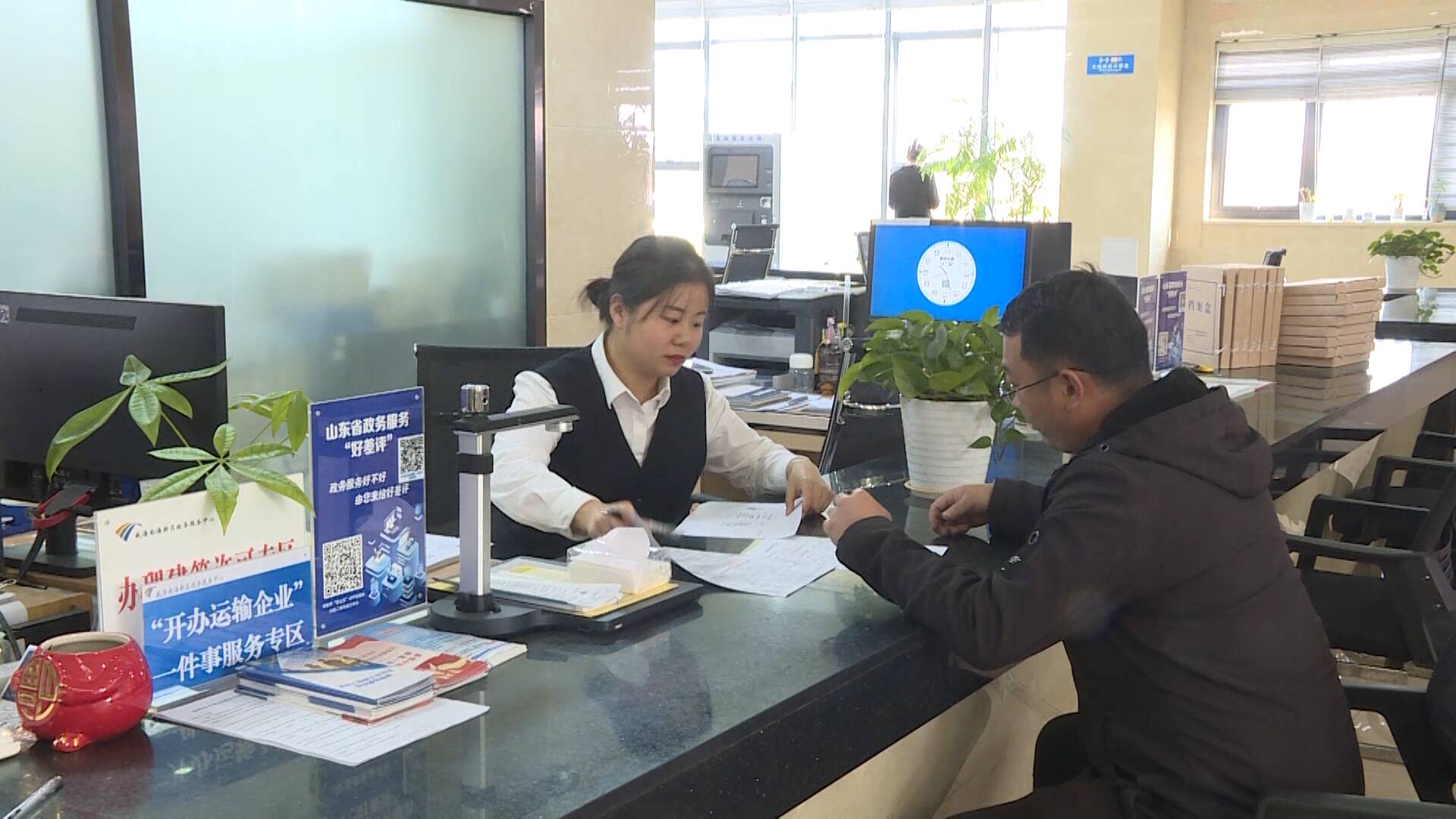 近日,威海逸程塑料科技有限公司因货物运输量的增加,需要添置一辆运输车。在威海南海新区行政审批服务局办理手续时,原本需要一个个独立办理的事项,整合为了“一件事”,一窗受理,一次提交即可。“一次性就办理完了,很方便,政府工作人员也挺热情,需要准备什么材料都提前告诉我们,来到审批服务大厅就办完了。”威海逸程塑料科技有限公司负责人时康乐说。威海南海新区行政审批服务局将开办运输企业涉及的企业营业执照信息核验、道路货物运输经营许可、普通货物运输车辆道路运输证配发等三个独立办理的事项,整合为一件事进行办理。申请材料由原来的8份精简至4份,办理时长由5个工作日压减至即时办理。