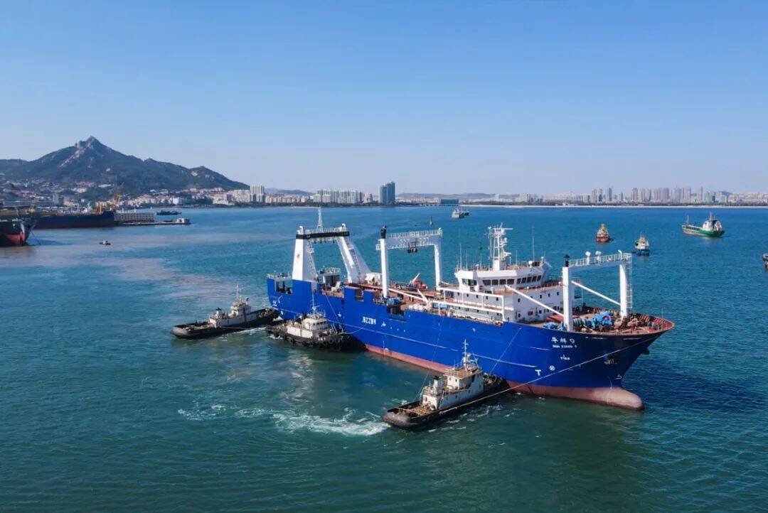 为加快向海图强经略海洋步伐,从2023年开始,石岛集团开始建设磷虾产业园区一期项目工程,包含由交通运输部批准建造的“华祥9号”南极磷虾捕捞加工作业船、1.5万吨的“华祥6号”冷藏运输船,以及由农业农村部批准的1万吨“华祥8号”渔业辅助船,还有储存能力达到5万吨的大型磷虾低温冷藏库,旨在打造南极磷虾捕捞、加工、运输、研发生产的全产业链条。