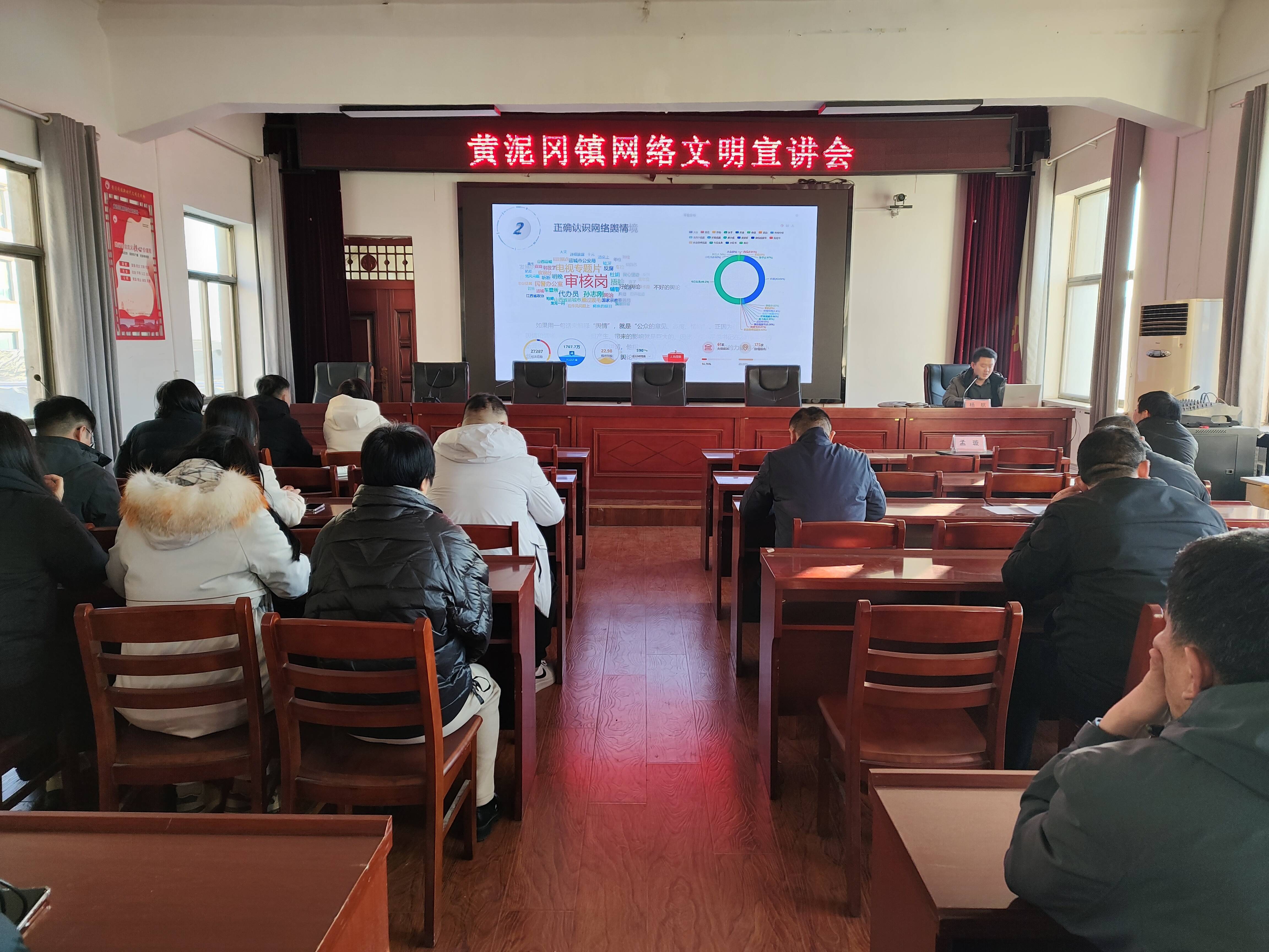 齐鲁网·闪电新闻1月9日讯 1月8日,郓城县黄泥冈镇邀请县委宣传部社科联主席李瑞丽、县网信服务中心网络宣传室主任杨航、网络安全室副主任杨尊茂到黄泥冈镇开展专题培训,镇机关全体干部职工参加培训。