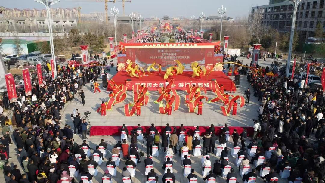 据悉,“好郓中国年”黄河大集以郓城县游客集散中心中轴线及盛平路段为主阵地,吸引了春联年货、特色小吃、娱乐休闲、乡镇特产和非遗企业等各类商家近400余家参与,活动为期一个月,将于2月26日(正月十九)落下帷幕。内容涵盖非遗大集、文化大集、年货大集、惠民大集、娱乐大集、民俗展演等多个方面。全县22个乡镇街道同时启动,将黄河大集打造成春节期间人民群众购物、娱乐、旅游、文化交流的集中场所。这对于活跃文化旅游市场、丰富群众文化生活、拉动内需刺激消费具有重要意义。