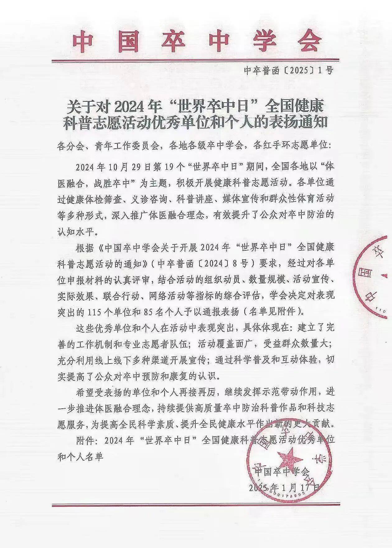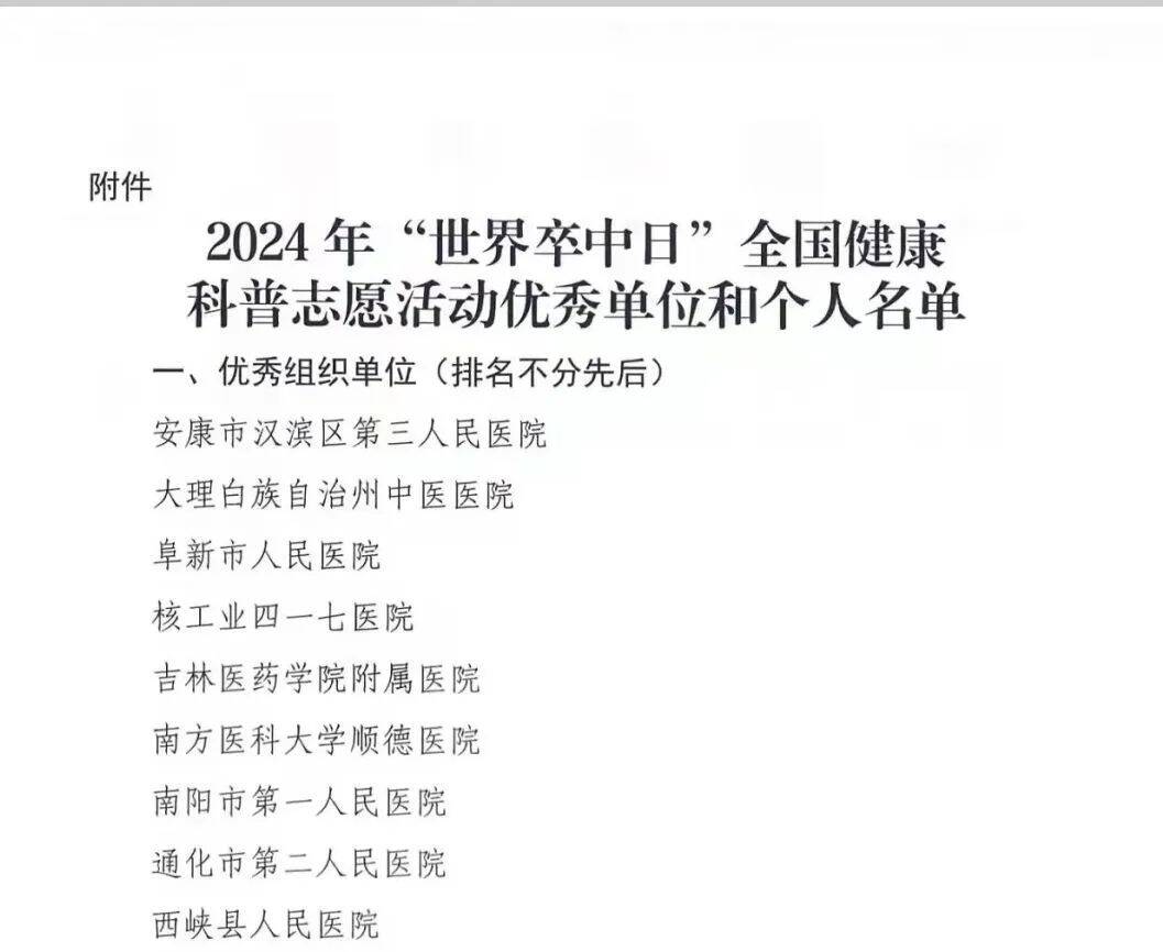 喜报!平阴县人民医院再获国家级表彰!平阴县人民医院荣获“世界卒中日”健康科普志愿服务优秀单位称号。